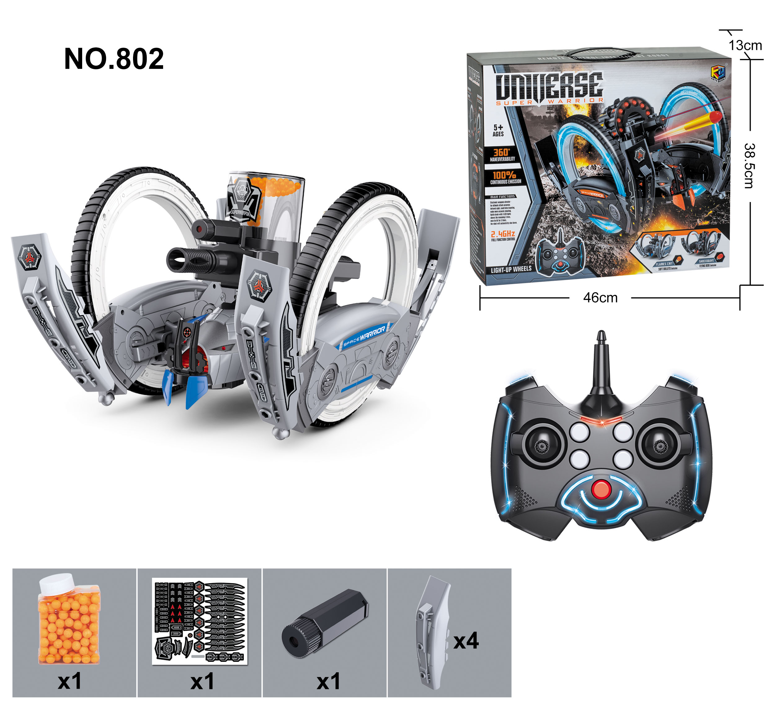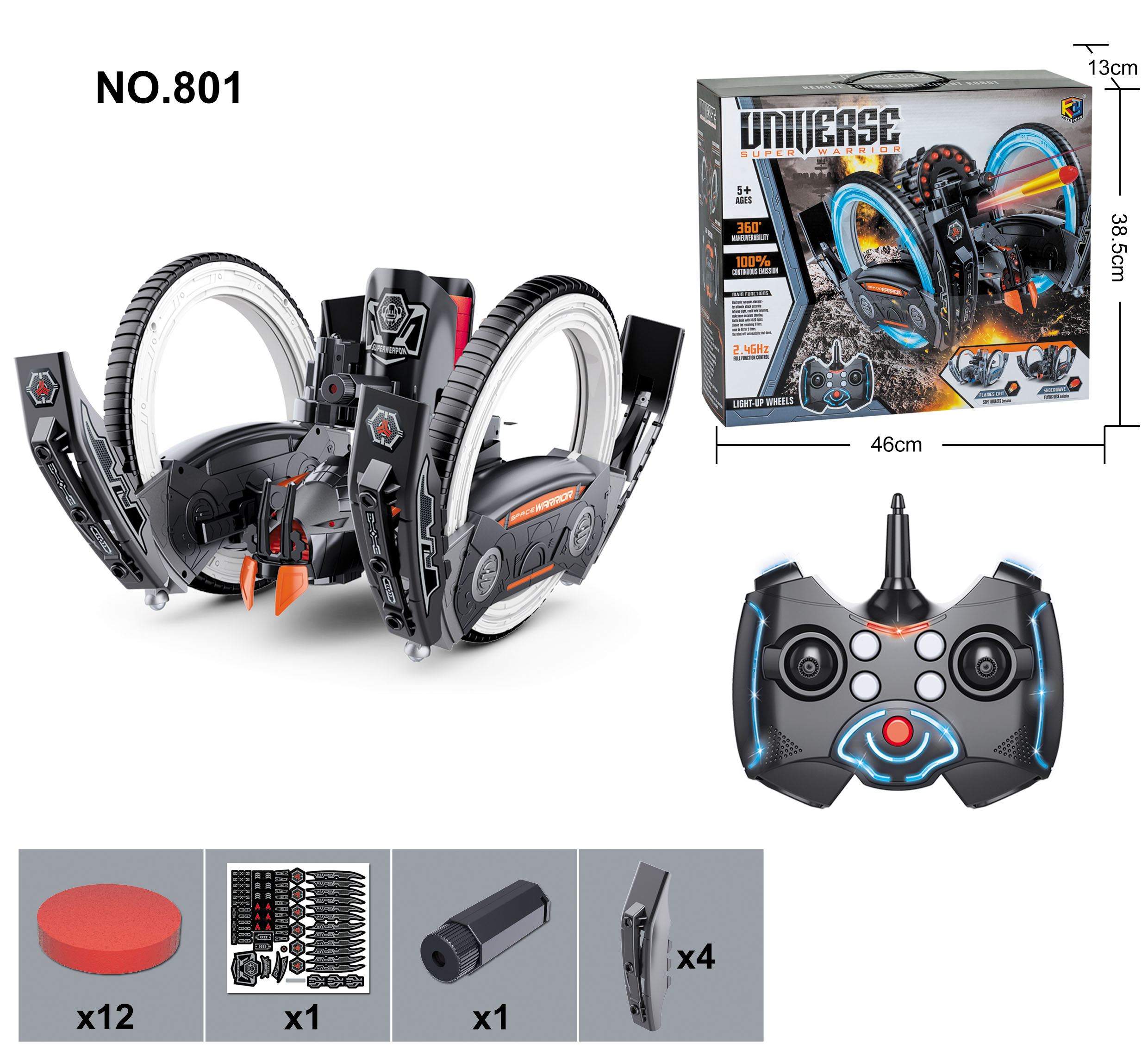 2.4GHz full-function RC battle robots with Infrared sight and armour components designed to be knocked off upon impact .