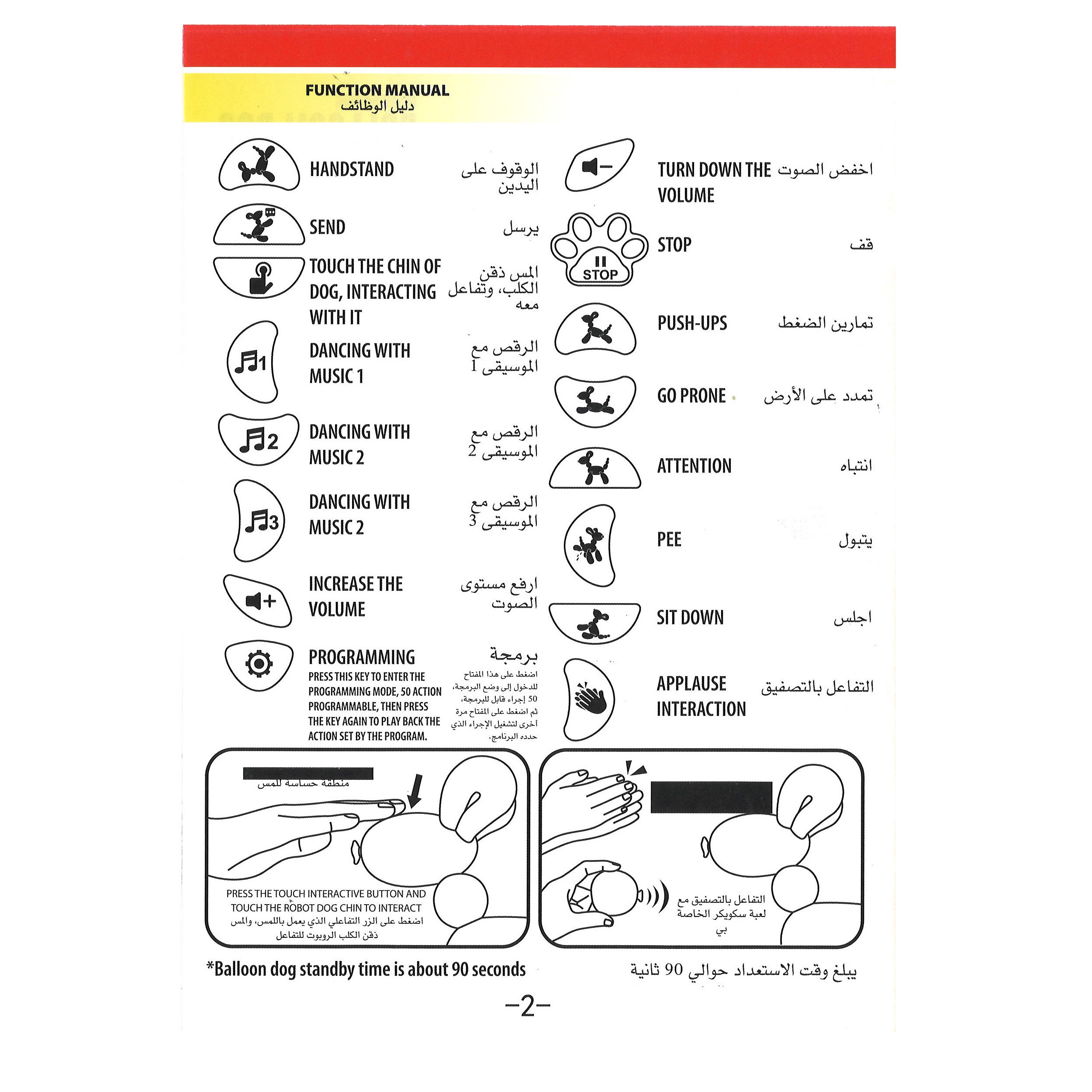 EACH PACKAGE INCLUDES: 1 remote control, 1 screwdriver, 1 toy Robot dog, 1 ball