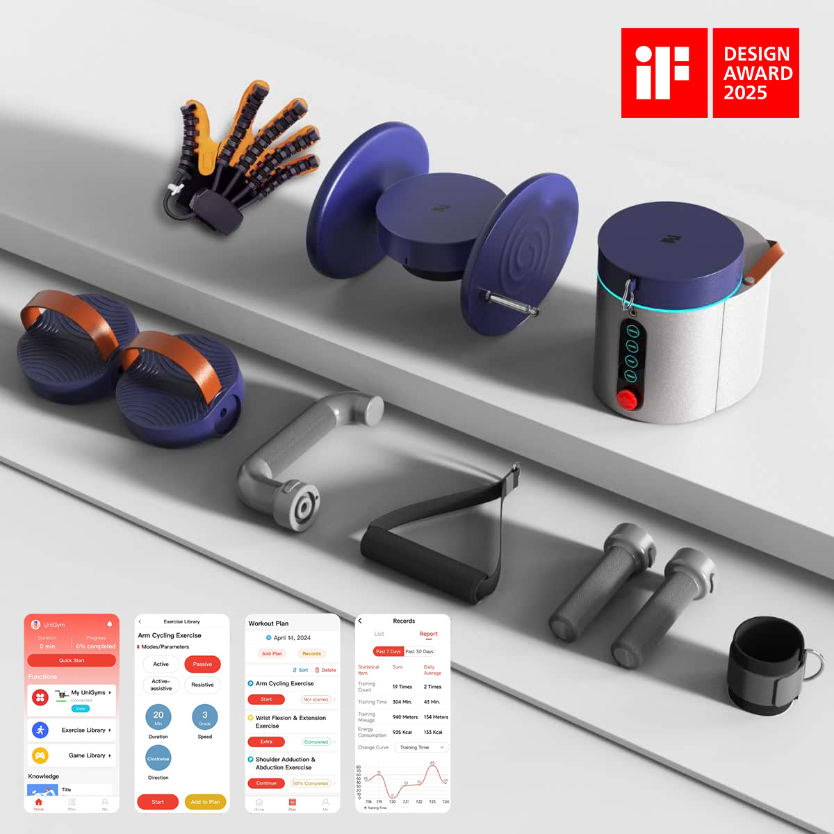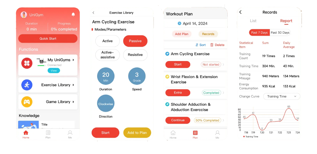 The Smart Home Exercise System is a modular, app-enabled training solution designed to make at-home exercise safer, more engaging, and more measurable—especially for older adults, people undergoing rehabilitation, and households that need a structured way to build long-term exercise habits. Built around the idea of “one system for full-body training,” it supports a wide range of movements across upper and lower limbs and multiple joints, while helping users and caregivers monitor progress through clear data and reports.