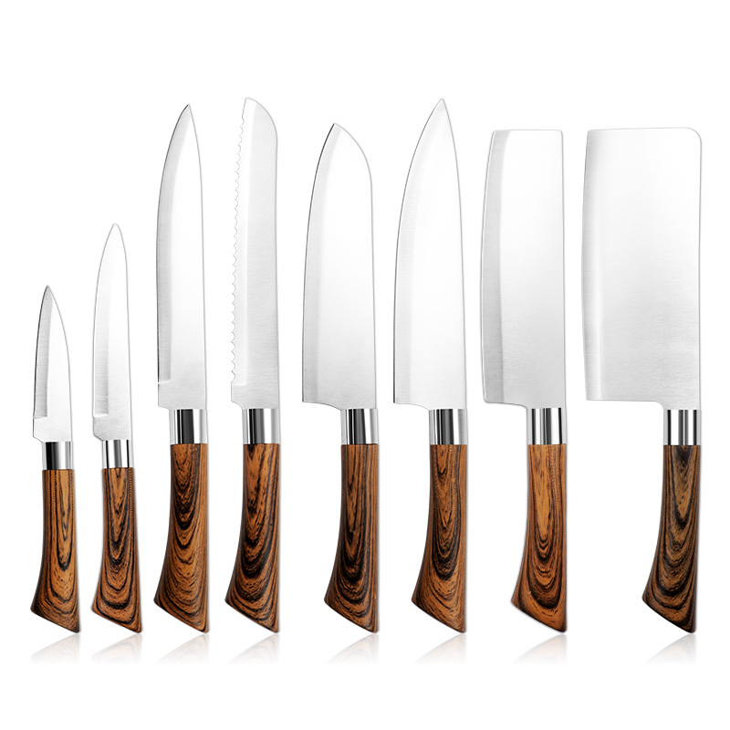 TUOMEI Wooden Pattern Plastic Handle Kitchen Knife