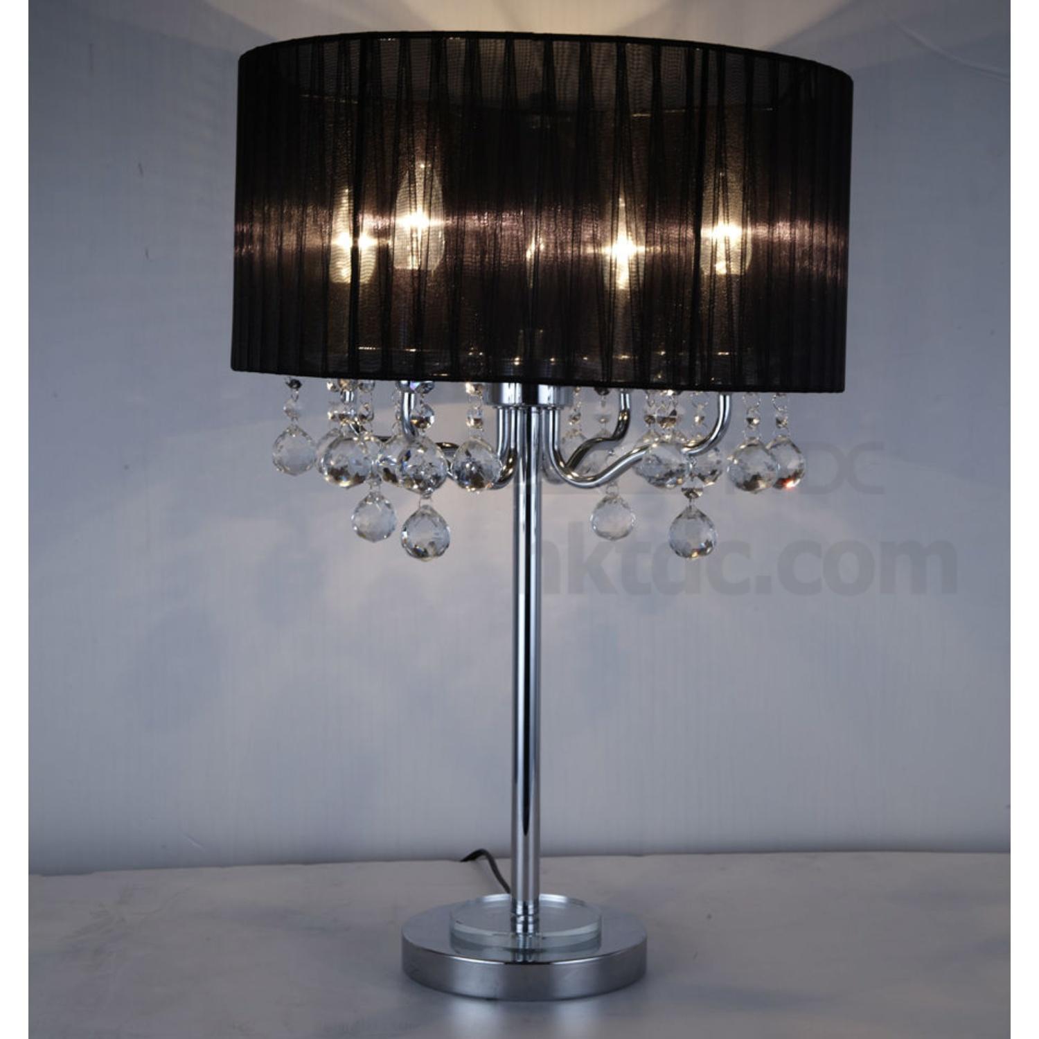 • Material: Iron Base with Chrome + Fabric Shade + Crystal