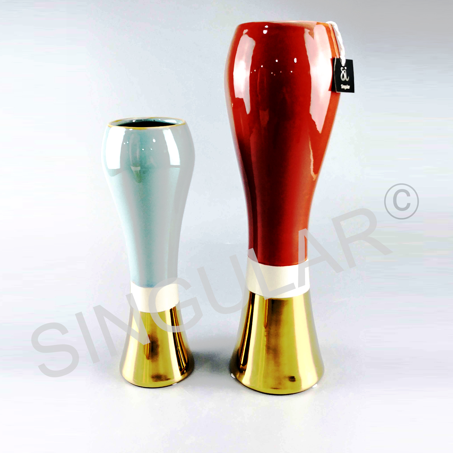 Three tone color beer shape ceramic vase set of 2