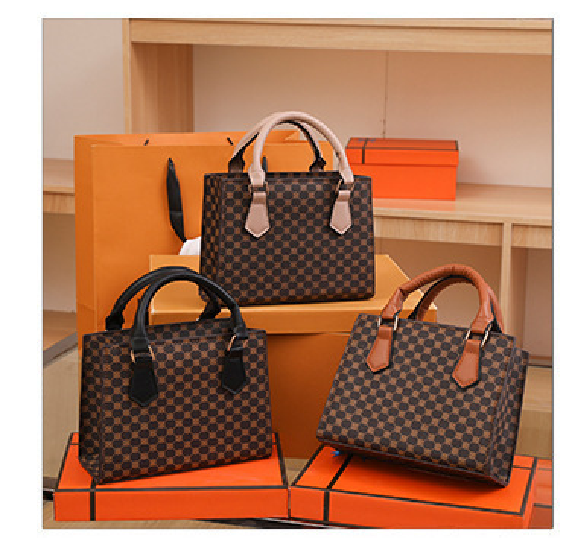 Elevate your everyday style with the structured 'Victoria' tote handbag, designed to bring a touch of classic, iconic pattern-work to your daily ensemble. Each bag is crafted with a firm, rectangular silhouette and features a sophisticated monogram-inspired pattern printed on durable material, instantly providing a high-fashion, polished look. Available with contrasting trim and handles in classic tones like black, rich brown, and soft beige, these bags are the perfect accessory for adding structure and luxury to your office or casual wear.