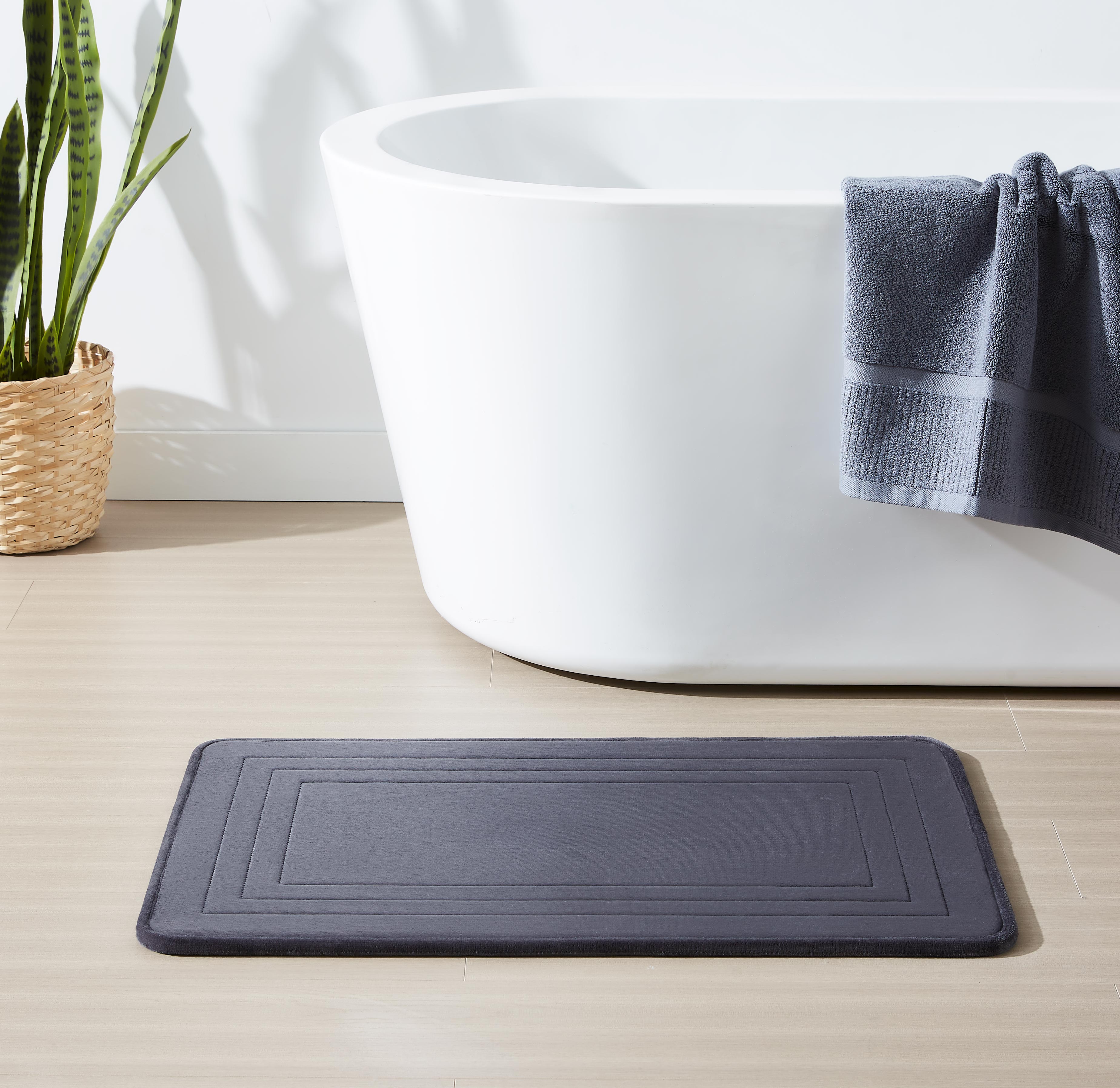 Memory foam bath mat, 50x80cm, Embroidery, gray, 100%polyester flannel, Anti-slip