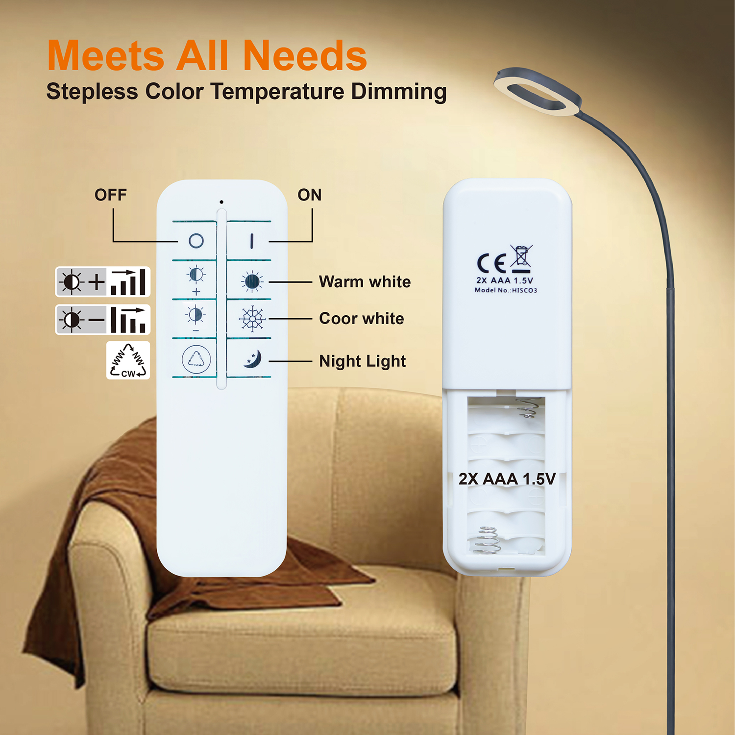 Function1: LED 3000K, 4000K, 6500K CCT selection