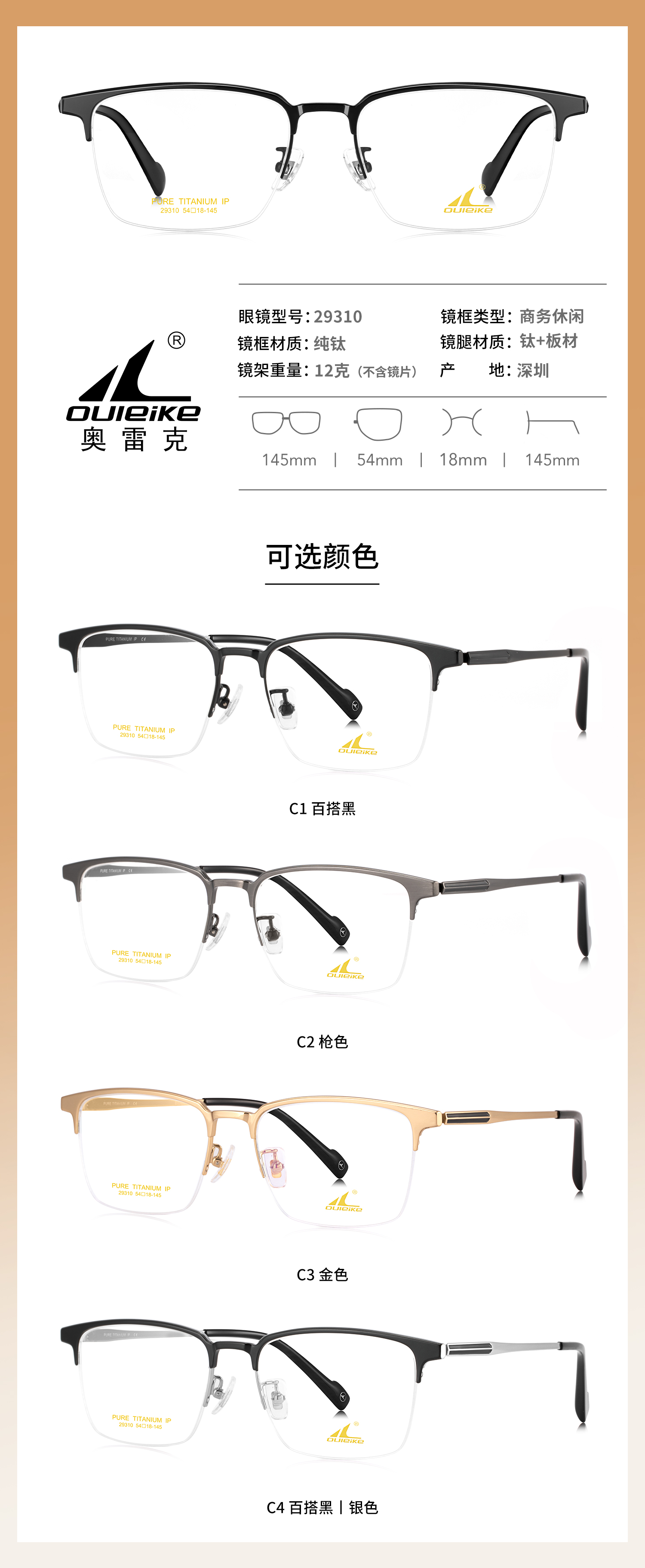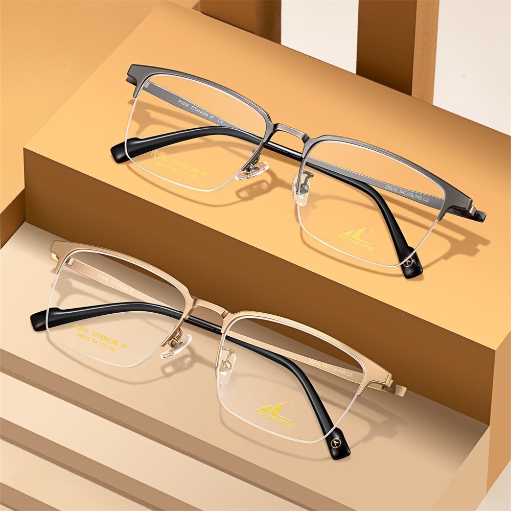OULEIKE eyewear pure titanium optical glasses frames are lightweight, causing minimal pressure on the nose and ears for enhanced comfort. They're hypoallergenic and suitable for high-power lenses due to their light weight. The IP plating is durable and won't peel off over time. Overall, pure titanium frames are popular for their lightweightness, corrosion resistance, biocompatibility, and variety of styles.
