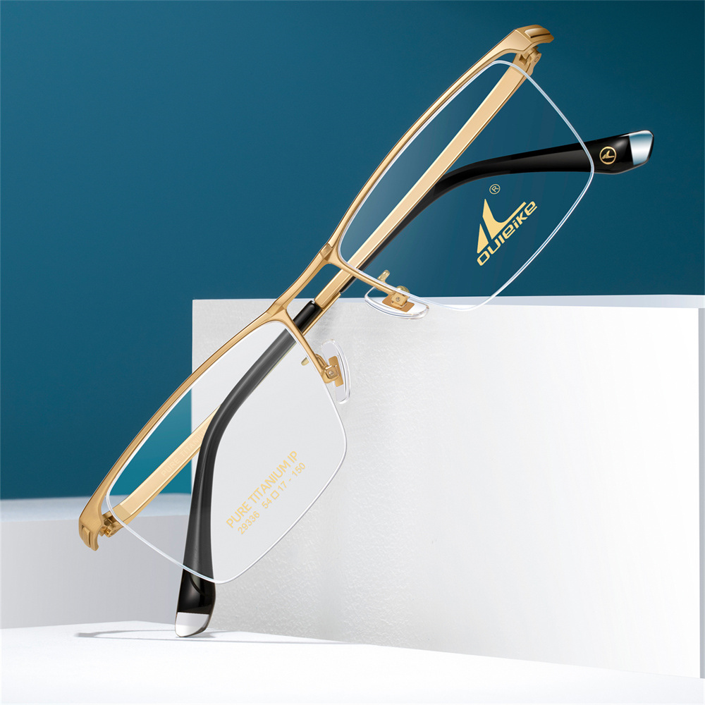 OULEIKE eyewear pure titanium optical glasses frames are lightweight, causing minimal pressure on the nose and ears for enhanced comfort. They're hypoallergenic and suitable for high-power lenses due to their light weight. The IP plating is durable and won't peel off over time. Overall, pure titanium frames are popular for their lightweightness, corrosion resistance, biocompatibility, and variety of styles.