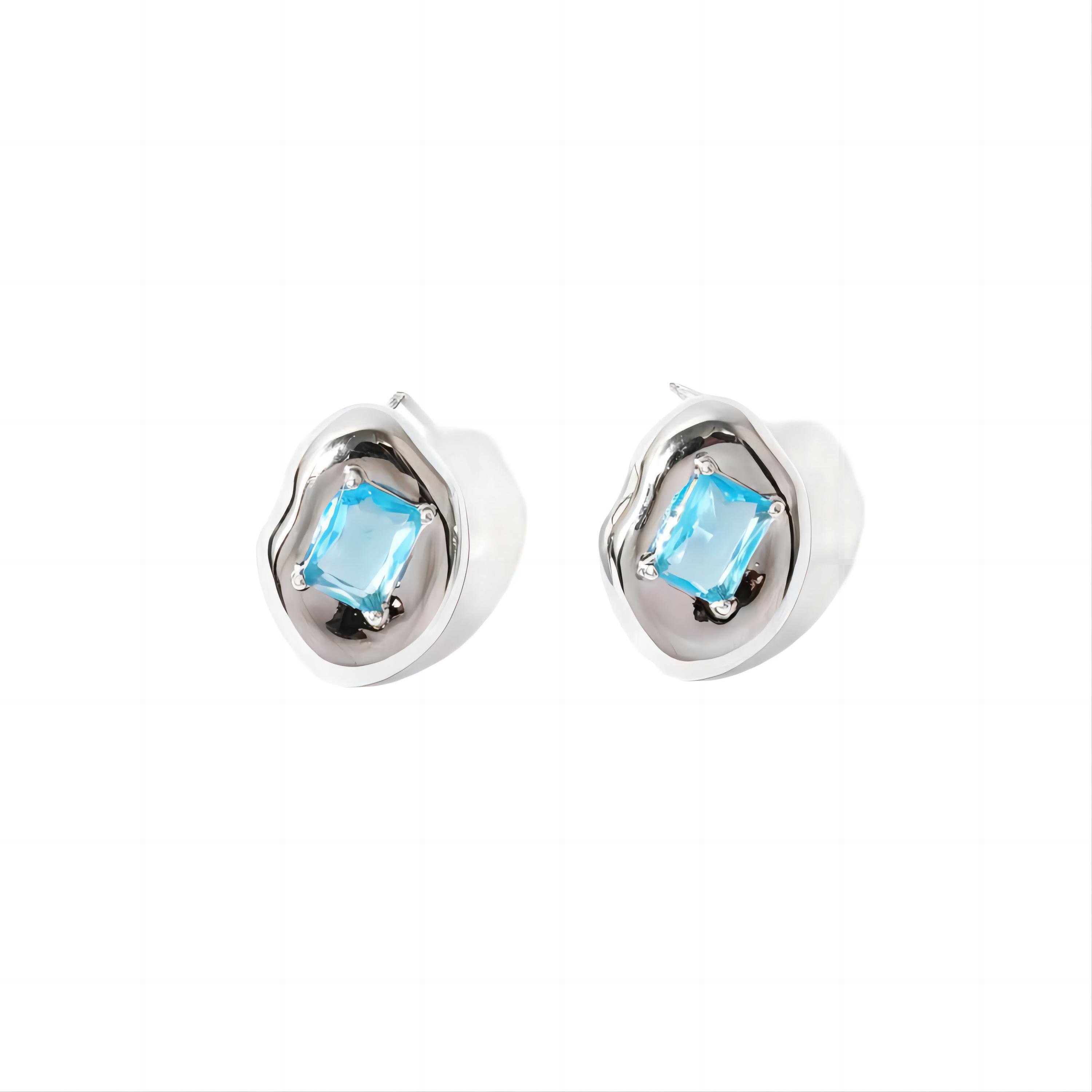 silver earrings,silver studs,coffe bead shape,blue topaz,fashion and luxury earrings,rhodium plated,ins earrings