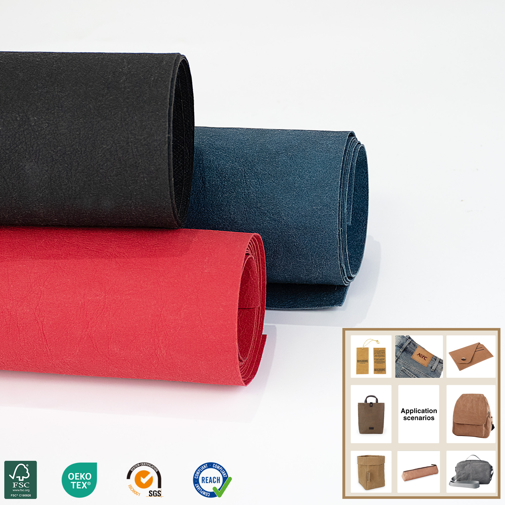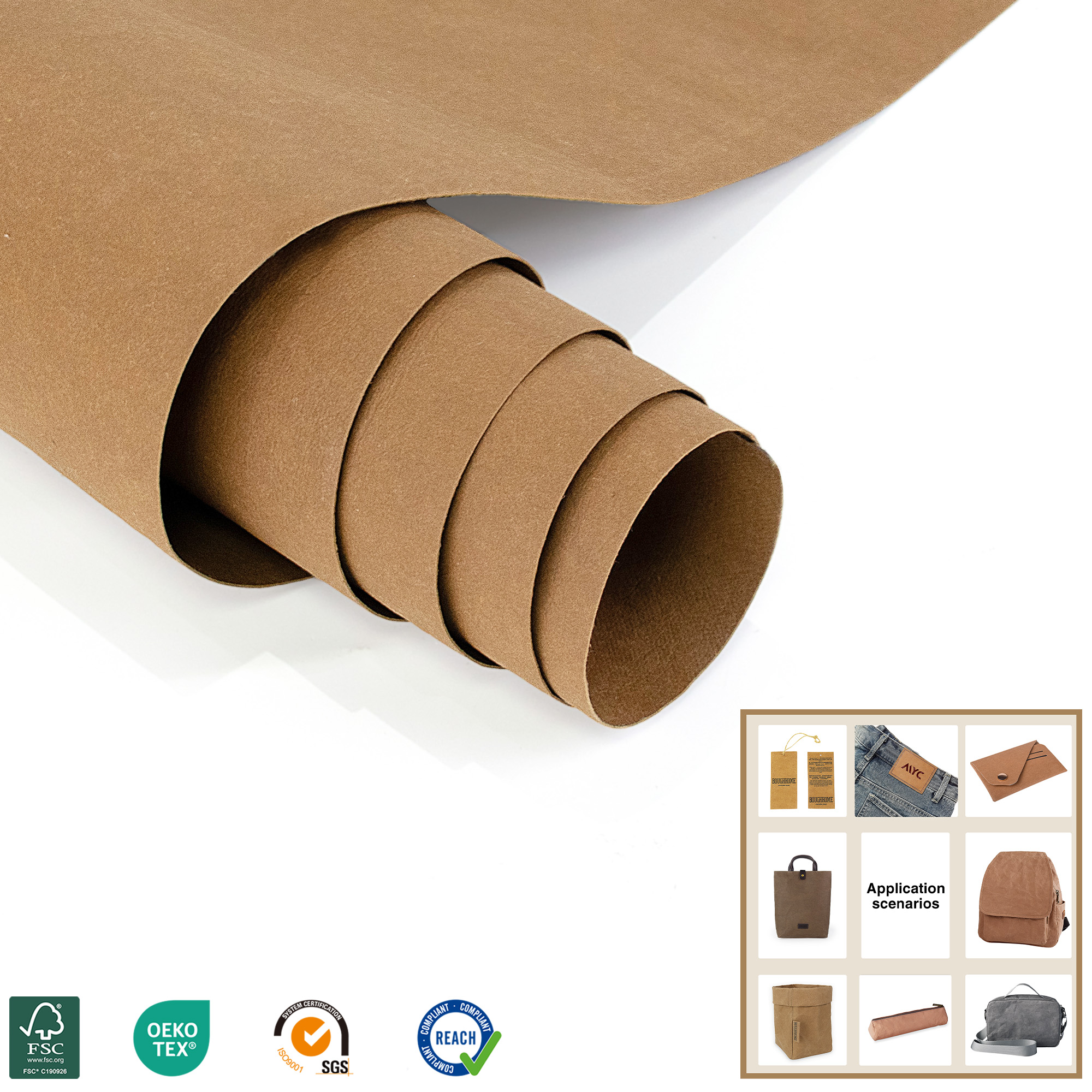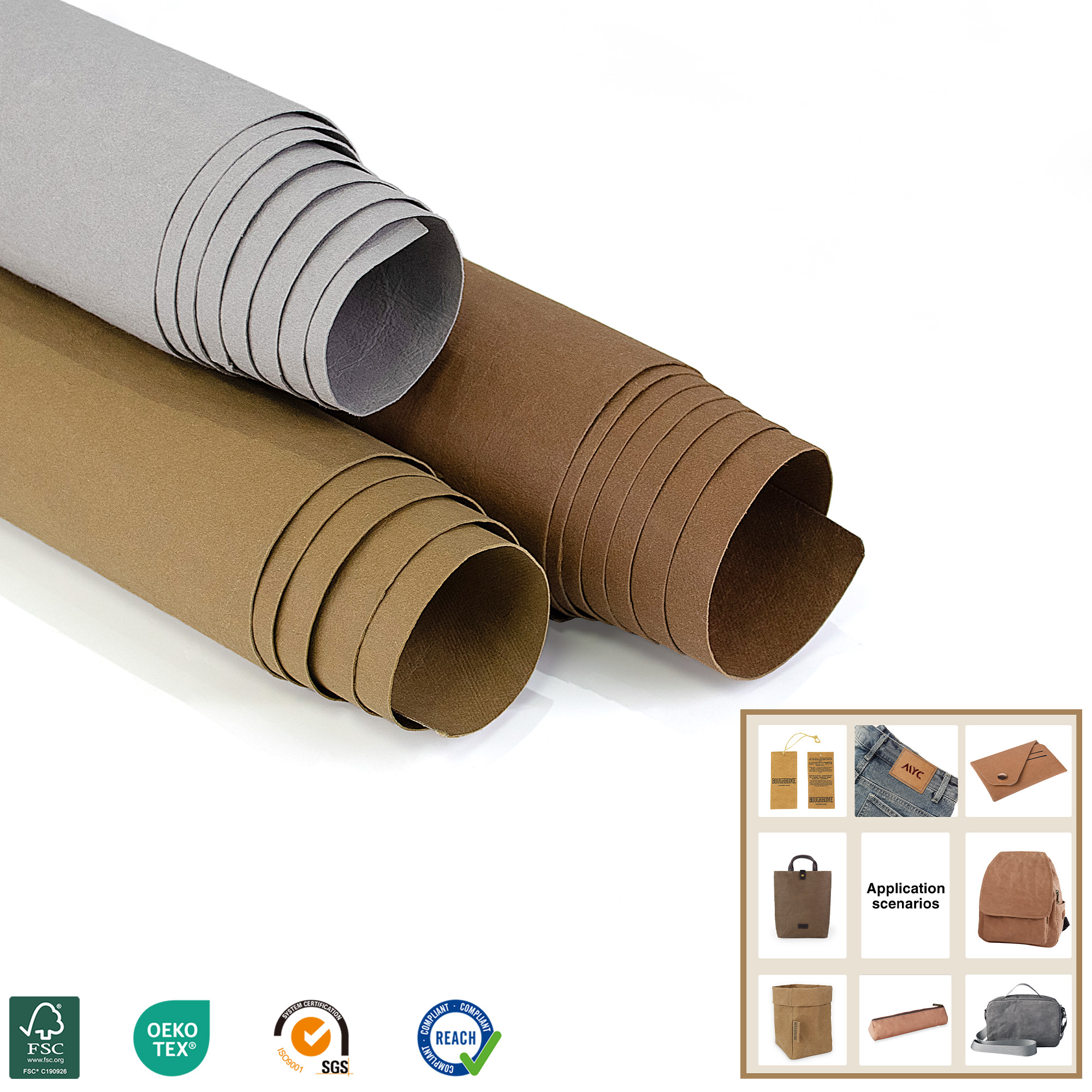 It is washable, free of formaldehyde, no volatile organic compounds (VOC) odor, 100% biodegradable, renewable, tear-resistant, anti-pollution, wear-resistant, scratch-resistant, corrosion-resistant, high smoothness, strong ink absorption and adhesion, antibacterial, easy to stick, easy to bond, easy to sew, moldable, with leather texture, fabric texture, wool texture, etc. It can be used as denim label, clothing accessories, packaging bags and stationery.