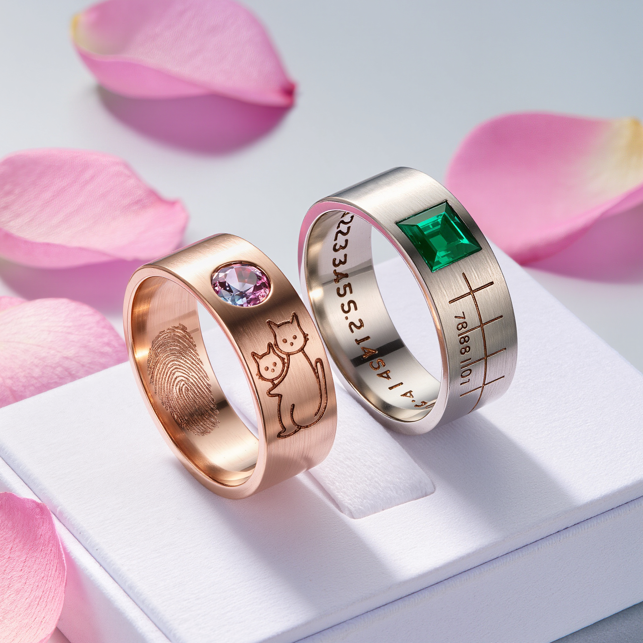 **Secret Series**: Carve the exclusive secrets between two into visible romance (e.g., anniversaries, birthstones, Morse code, fingerprint motifs). The lover's fingerprint can be engraved on the ring, creating the most intimate touch.