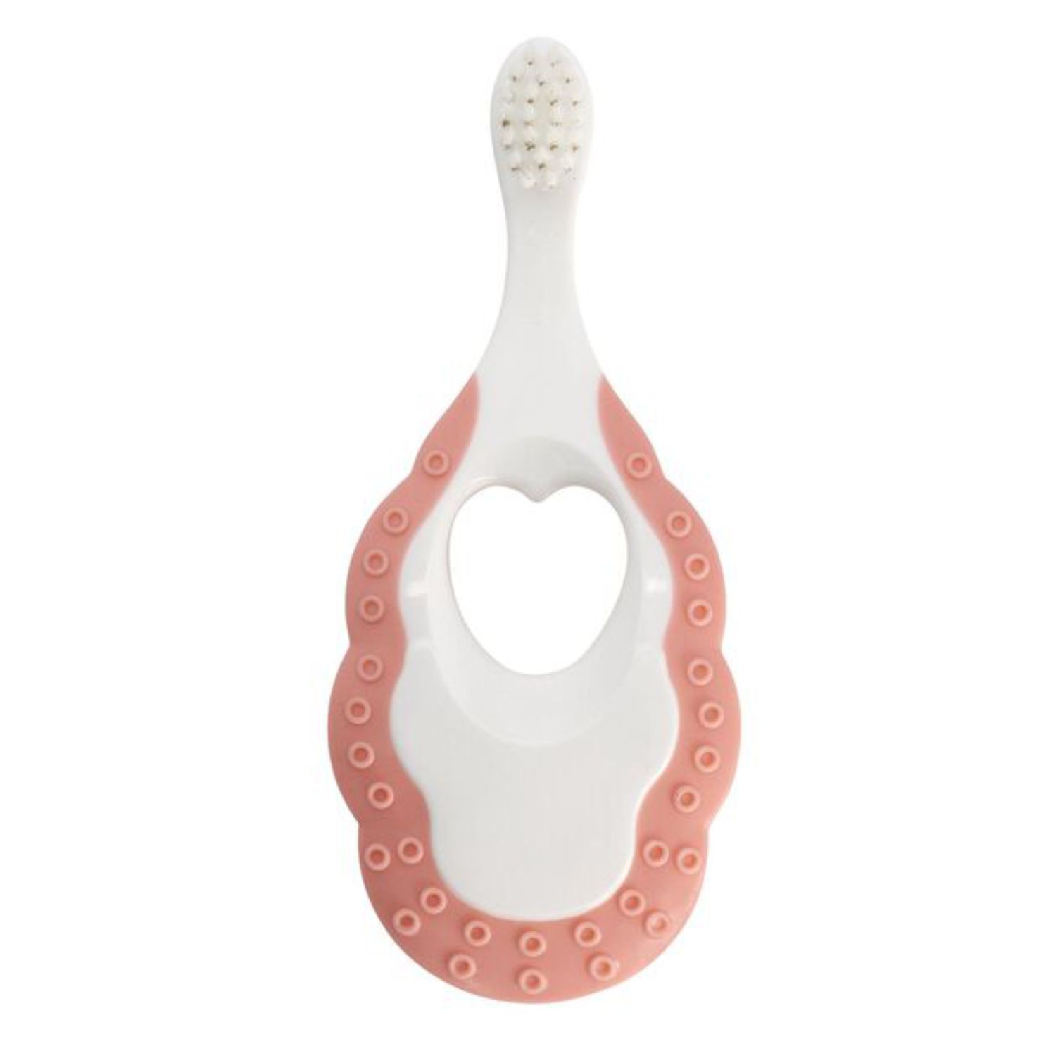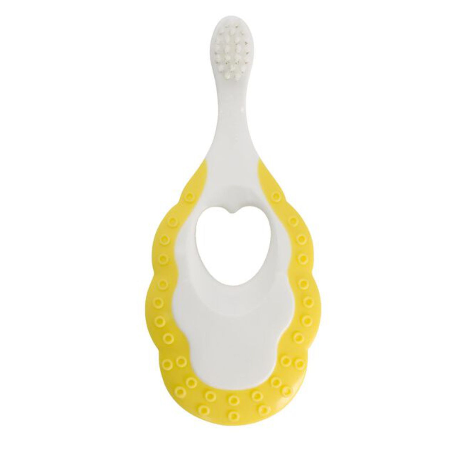 0-2 years old baby toothbrush. The toothbrush has an extra-large handle that can be used by even the tiniest of hands. The bristles of the brush are of very high quality and very soft. The brushes are available in a variety of colors and the color you receive is always a surprise. Tip: In any case, replace your toothbrush every three months, or sooner if the bristles become detached.
