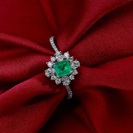 0.92ct Colombian Emerald and Diamond Ring in 18KW