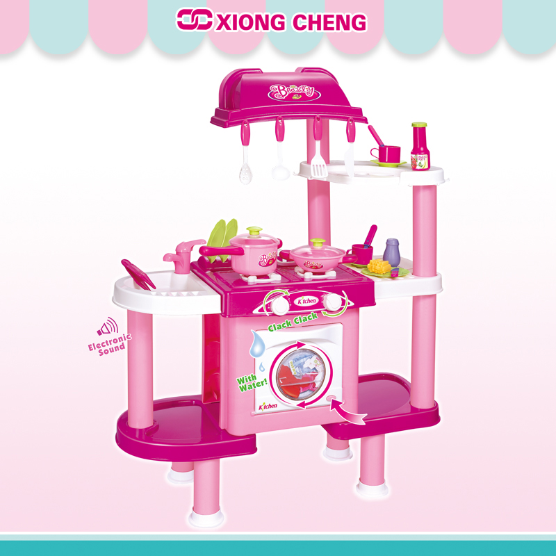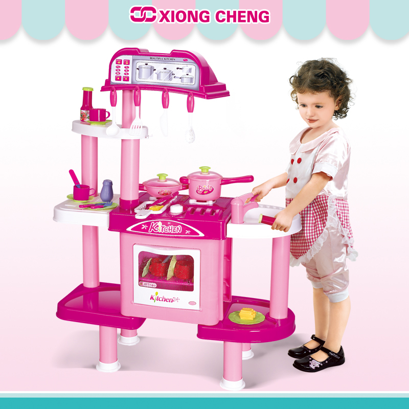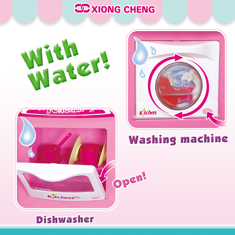 The kids' kitchen is a charming and interactive play set that sparks the imagination of young children. It is crafted with high-quality, child-safe materials to ensure durability and safety during playtime. This miniature kitchen typically features a stove with adjustable burners, allowing kids to pretend to cook up a storm. The oven door can be opened and closed, adding to the realism. There is also a sink with a faucet that can be turned on and off, providing an opportunity for children to engage in pretend dishwashing. The countertops are spacious enough for food preparation and come with built-in storage areas for pots, pans, and utensils. The set includes a variety of colorful cookware, cutlery, and play food items. With its vibrant colors and detailed design, this kids' kitchen not only offers hours of fun but also helps in the development of creativity, role-playing skills, and an understanding of basic kitchen functions and food concepts. It is an ideal addition to any playroom or children's area, inspiring kids to explore the wonderful world of cooking and domestic play.