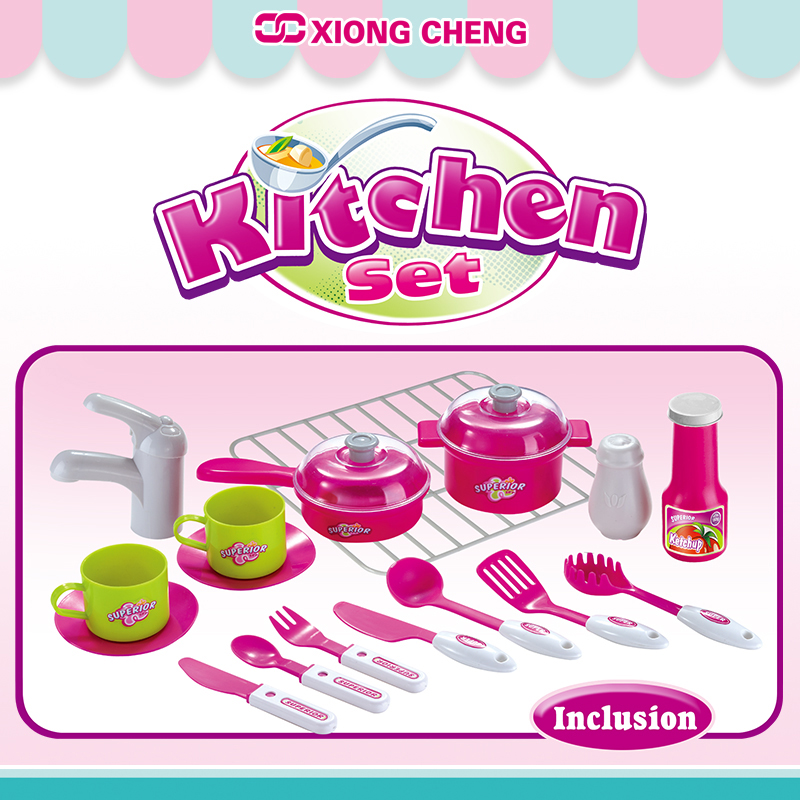 It usually consists of a collection of miniature kitchen appliances and utensils. There's a cute little stove with knobs that can be turned, just like a real one, allowing children to pretend to cook up delicious meals. The sink comes with a faucet that can be toggled on and off, adding to the authenticity of the play experience.