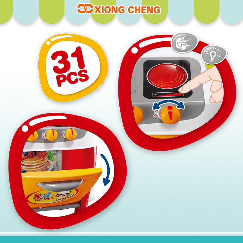 Made from high-quality, durable materials, this play set is built to withstand the enthusiastic play of kids. The main structure of the kitchen is crafted from sturdy plastic or wood, with smooth edges and surfaces to prevent any accidental scratches or cuts.