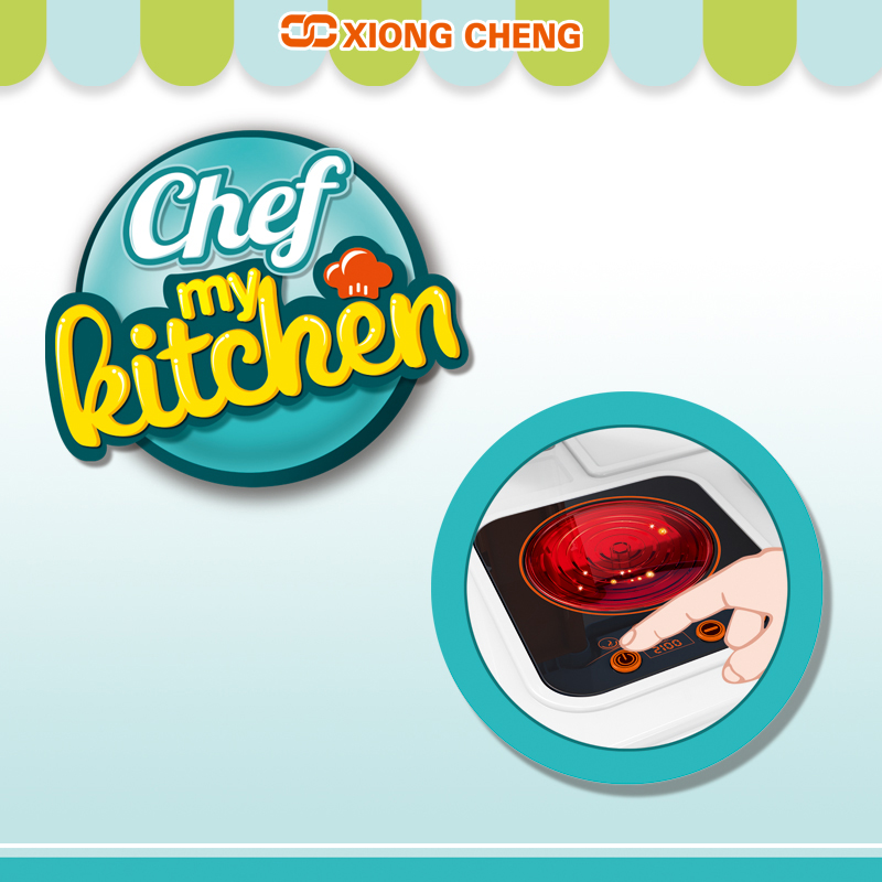 This play set is constructed from high-quality, durable materials to withstand the enthusiastic play of kids. The main structure of the kitchen is designed with attention to detail, featuring a stove with burners that can be "turned on" and "off" with a simple twist or push, accompanied by realistic clicking sounds to enhance the play experience. The oven has a door that opens and closes smoothly, allowing children to "bake" their favorite pretend treats.