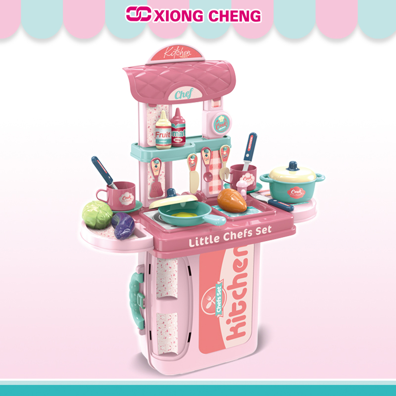 This play set is constructed from high-quality, durable materials to withstand the enthusiastic play of kids. The main structure of the kitchen is designed with attention to detail, featuring a stove with burners that can be "turned on" and "off" with a simple twist or push, accompanied by realistic clicking sounds to enhance the play experience. The oven has a door that opens and closes smoothly, allowing children to "bake" their favorite pretend treats.