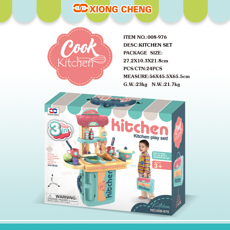 This play set is constructed from high-quality, durable materials to withstand the enthusiastic play of kids. The main structure of the kitchen is designed with attention to detail, featuring a stove with burners that can be "turned on" and "off" with a simple twist or push, accompanied by realistic clicking sounds to enhance the play experience. The oven has a door that opens and closes smoothly, allowing children to "bake" their favorite pretend treats.