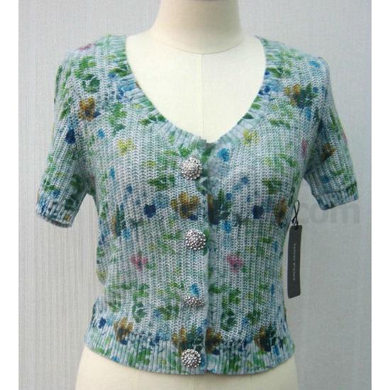 Cardigan in polka rib with floral printed. V neckline. Fancy buttons.