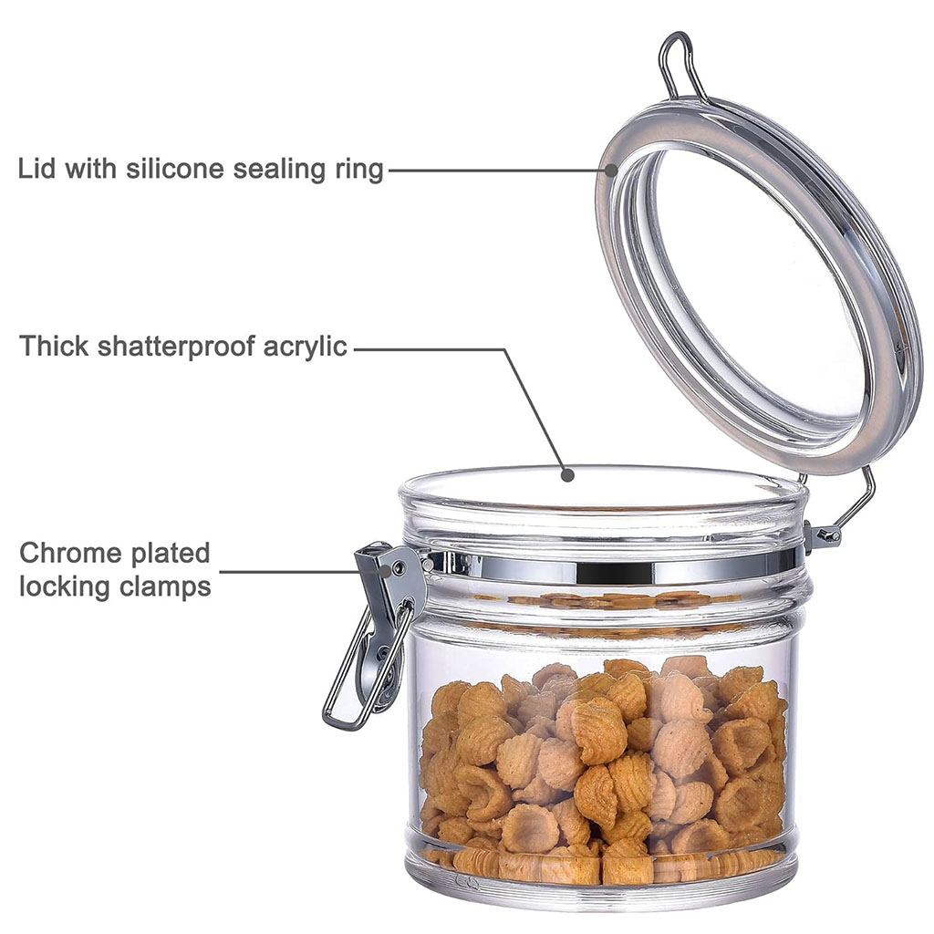1,000 ml Airtight Acrylic Canister with Locking Clamp includes the following features :