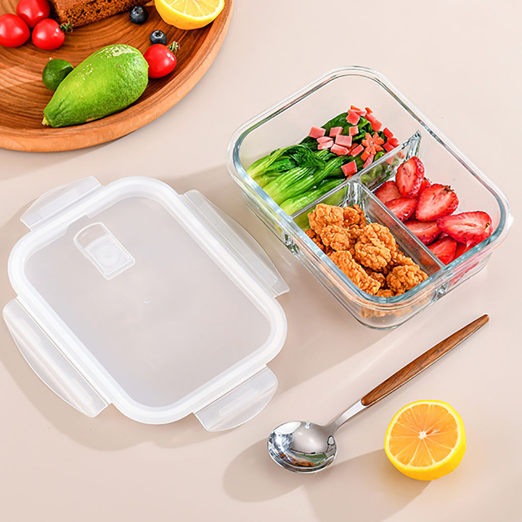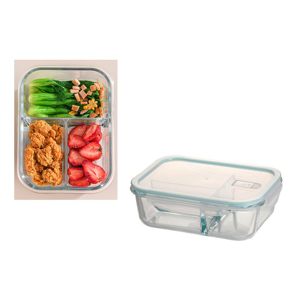 1,040 ml Rectangular-shaped Airtight Glass Crisper with 3 Compartments and Snap Locking Lid includes the following features :