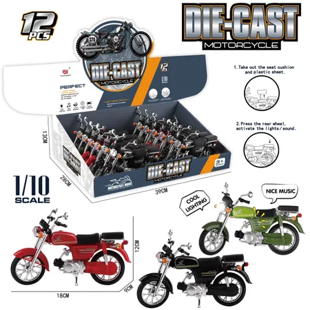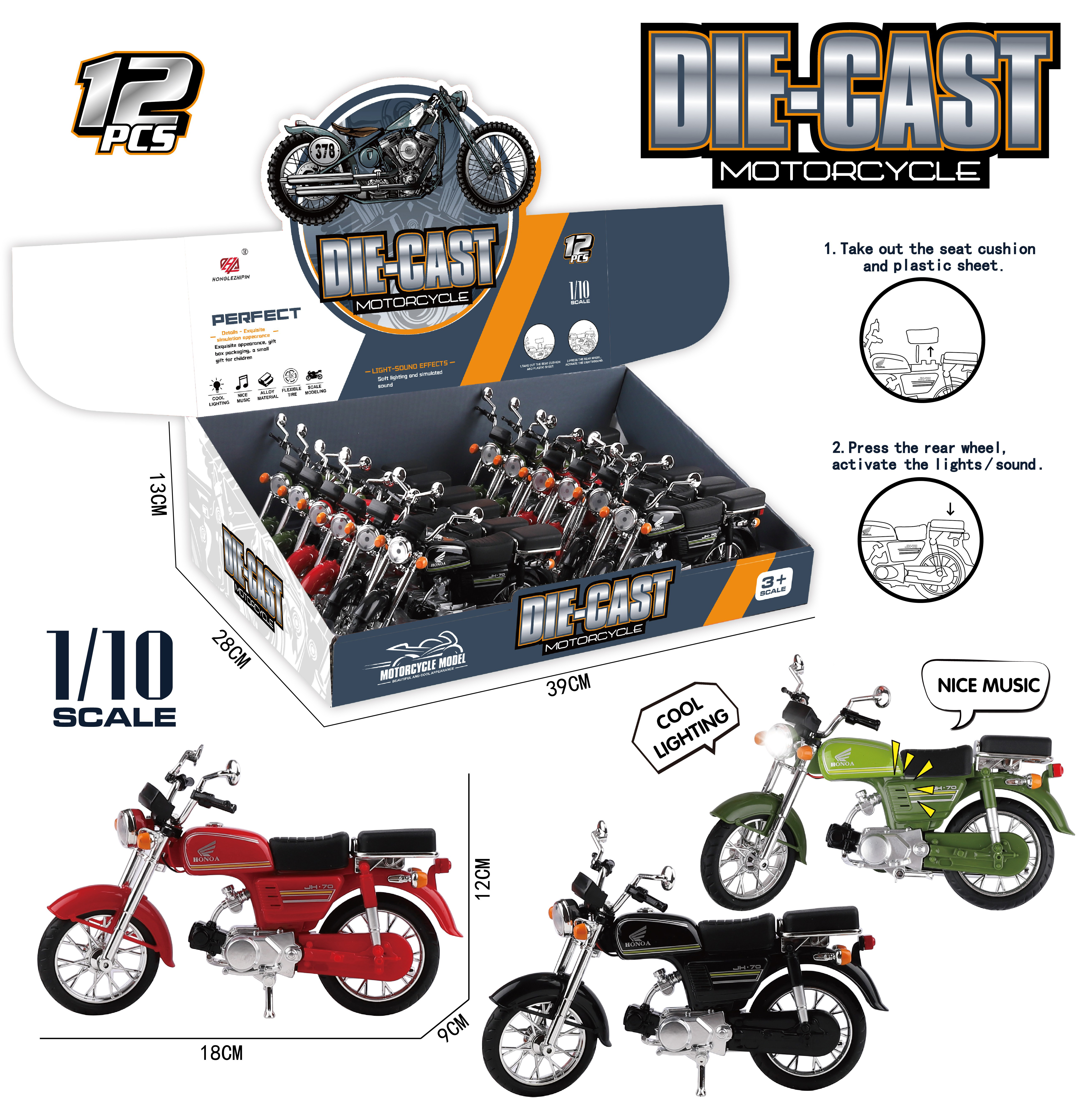 1:10 Diecast light sound simulation ornaments retro classic motorcycle 12PCS