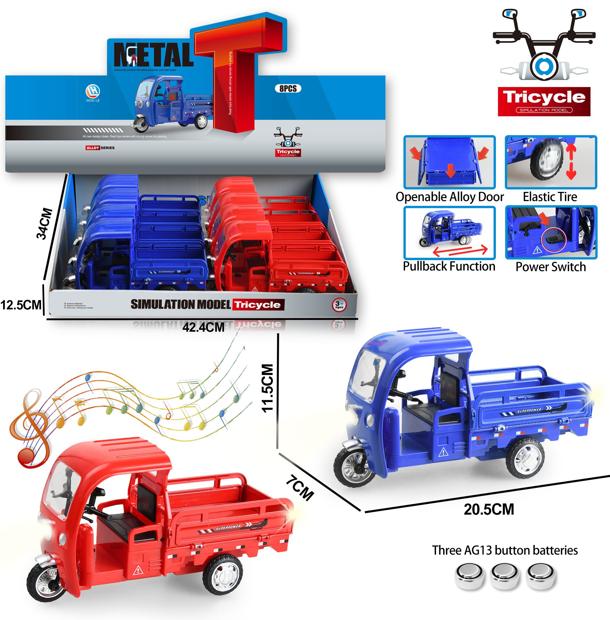 1:10 Diecast with light and sound simulation KID TRICYCLE (2COLOR mixed, Battery Included with light and sound) 8PCS