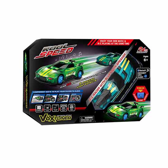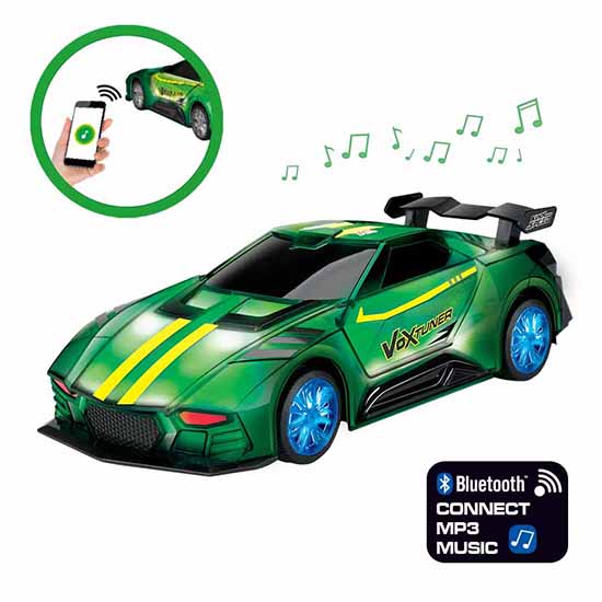 Scale 1:16 2.4Ghz R/C VoxTuner (27cm), amazing music playing funciton with color shifting effects, all functions available to control thru transmitter; Easy to connect with your smartphone thru Blue Tooth (or thru audio cable) to playing any of your favourite music; SD card slot, USB port included for more music playing methods.