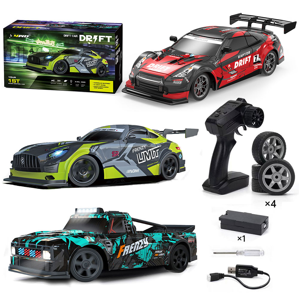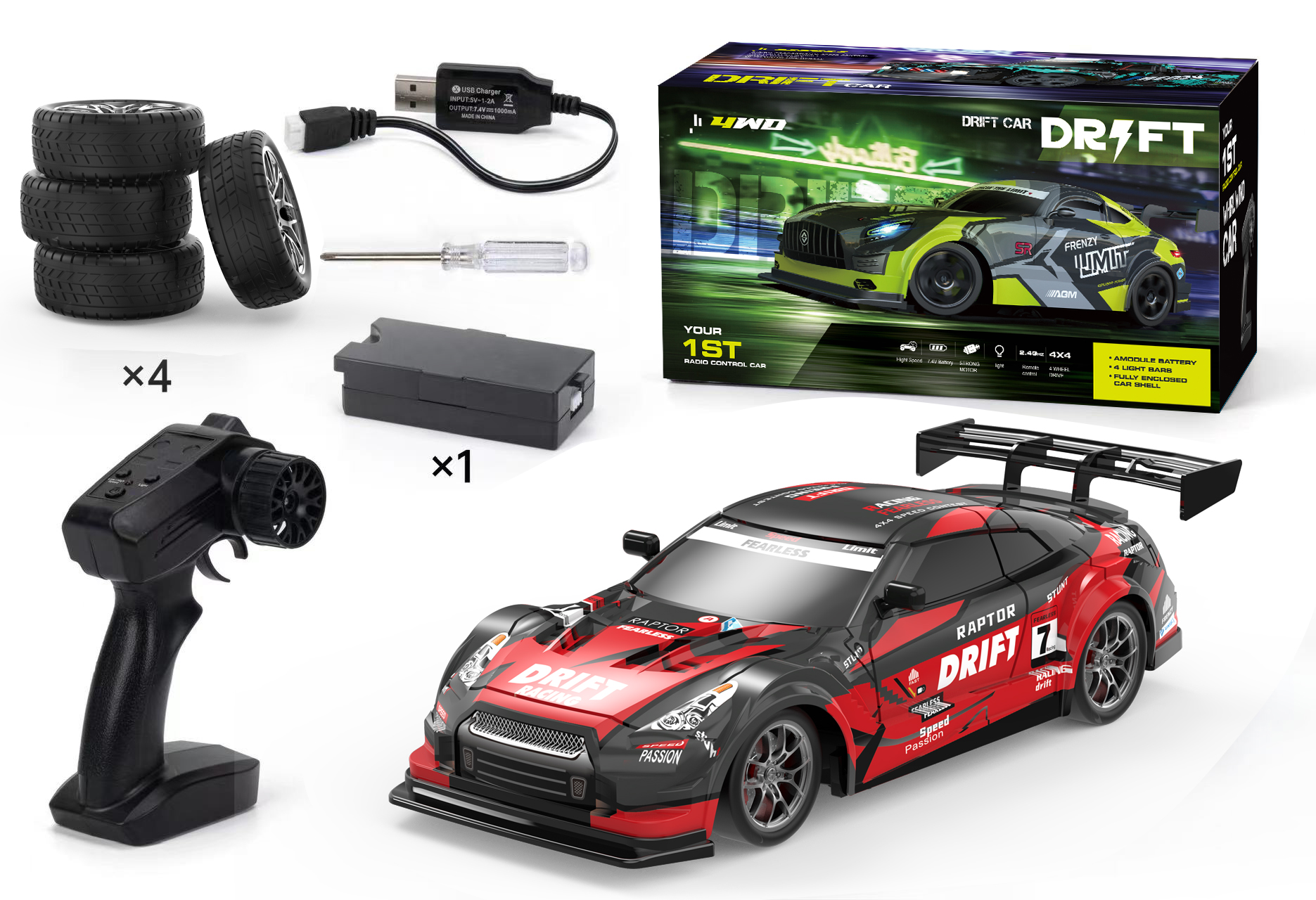Forward, backward, turn left, turn right, four-wheel drive, replaceable tires, drift, front and rear bottom lights, modular battery, PVC all-inclusive body