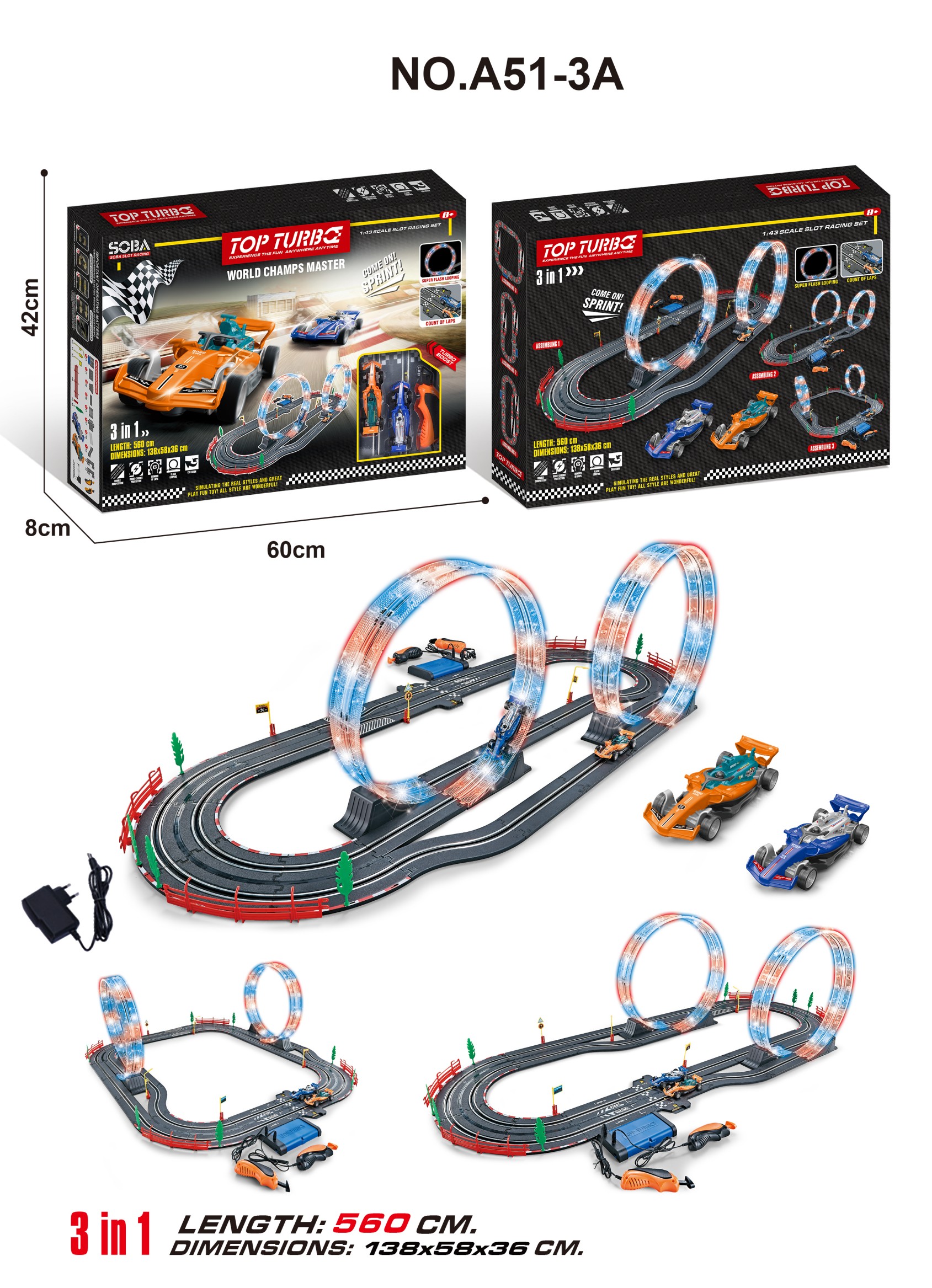 Track length: 5.6 meters. Track assembly size: 138 * 58 * 36 cm.