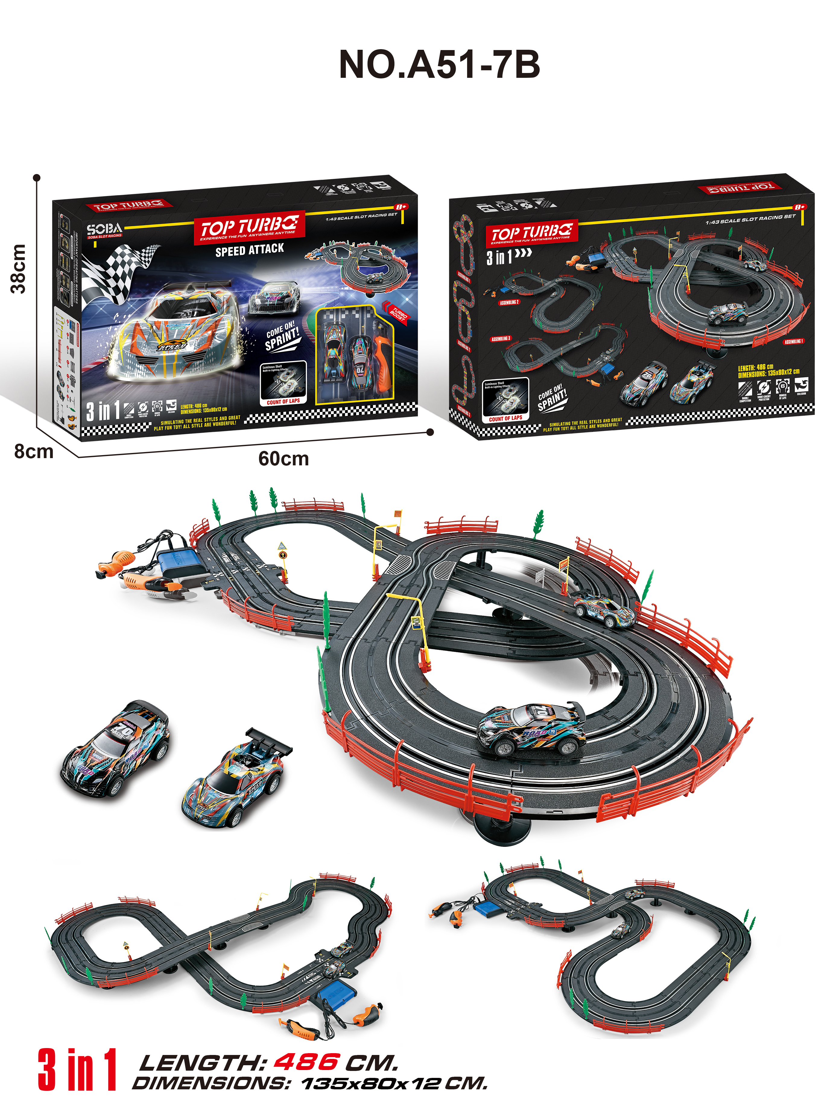 Track length: 4.86 meters. Track assembly size: 135 * 80 * 12 cm.