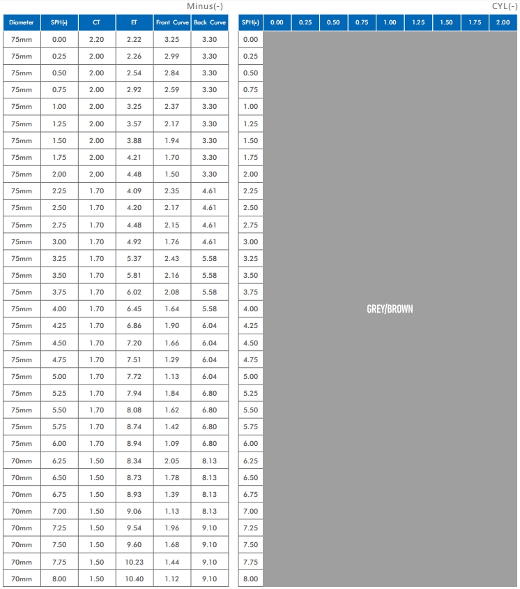| 1.56 BI-AS Finish Single Vision Photochromic Lens In Mass (Grey/Brown) | 1.56 | Grey/Brown | 75/70mm | Photochromic Oligomer |