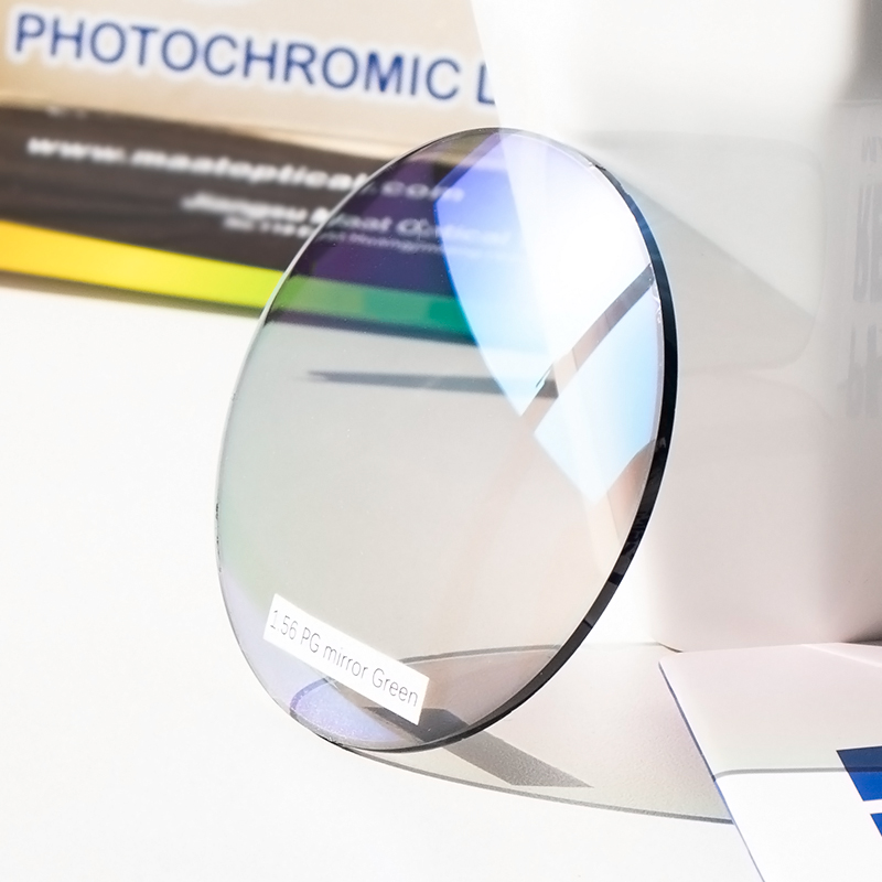 | 1.56 PG mirror green | 1.56 | Green | 75mm | HMC | Bi-aspherical | Photochromic Oligomer |