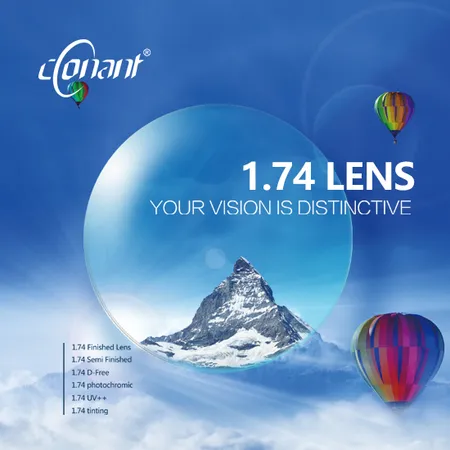 Conant’s 1.74 high index series uses MR-174™ raw materials from Japan's Mitsui Chemicals, which is a super high index and light lens material. Its excellent optical performance allows users to experience comfort and lightness, at the same time it improves color reproduction and clarity.