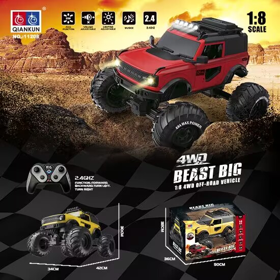 1/8 scale big wheels remote control car with Yellow and Red colors