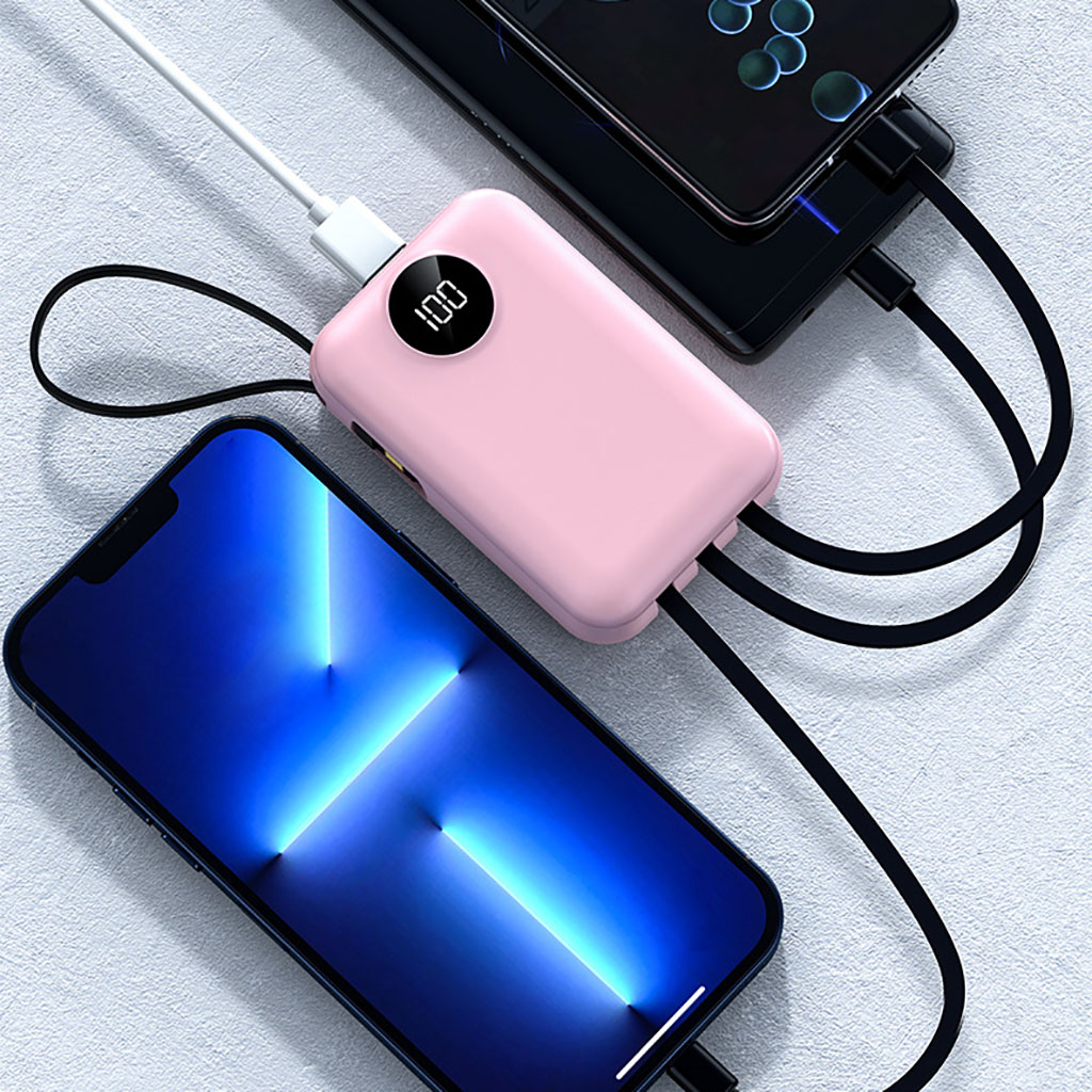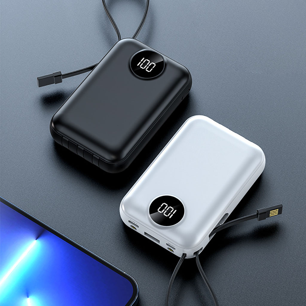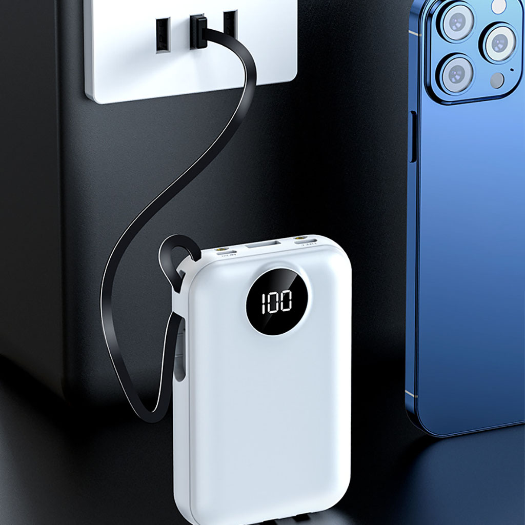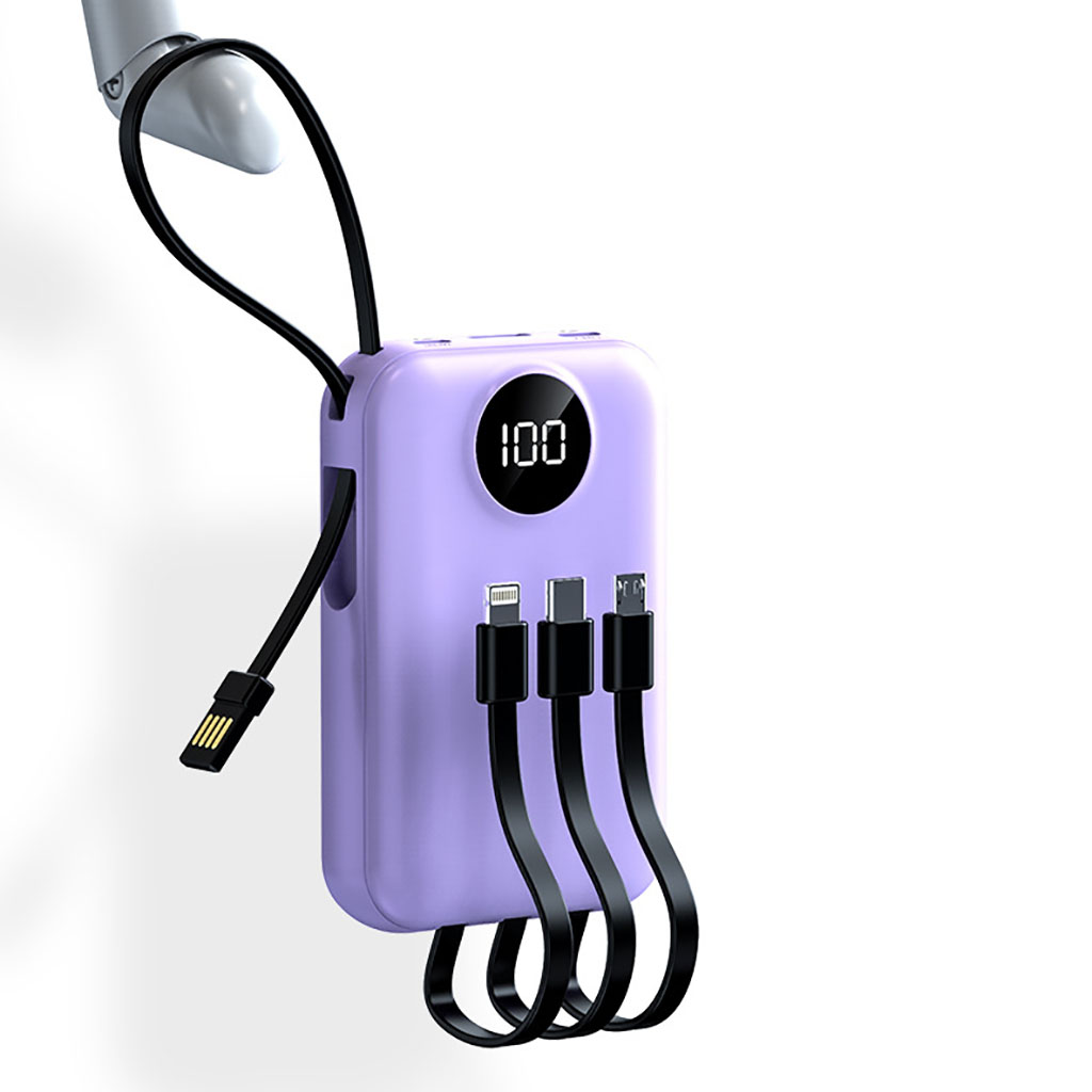 10,000 mAh Fast Charging Power Bank with 4 Built-in Cables and Round Screen Display includes the following features :