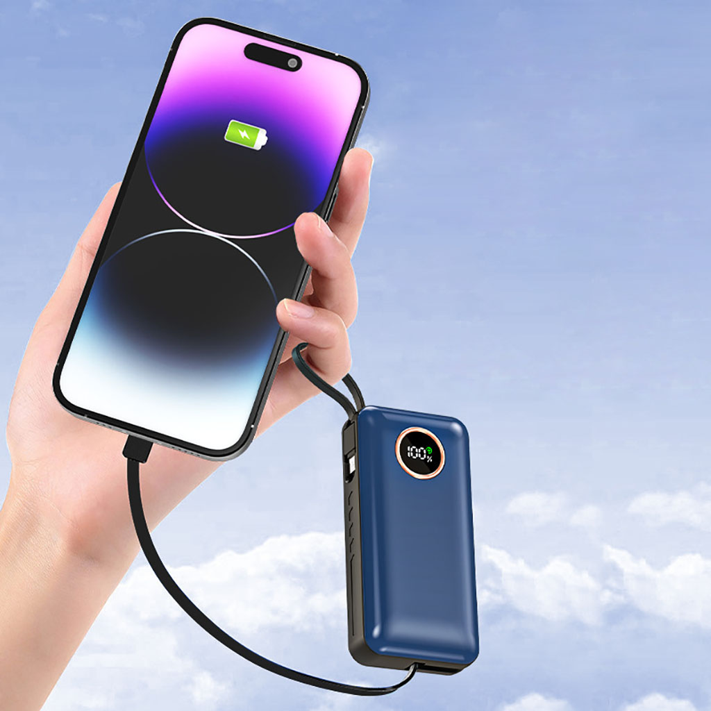 10,000 mAh Fast Charging Power Bank with Dual Built-in Cables and Digital Display includes the following features :