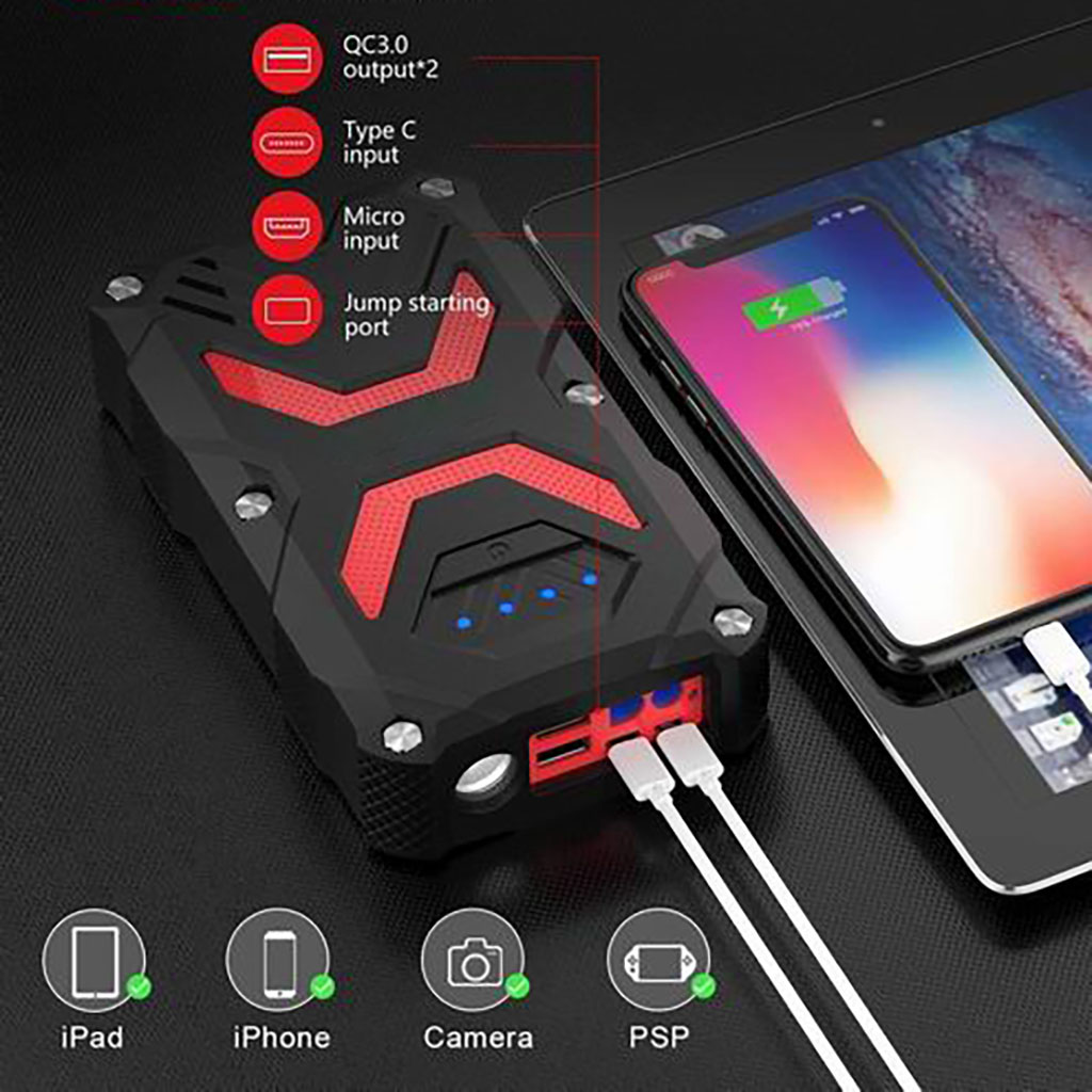 10,000 mAh IP67 Waterproof Car Jump Starter with Built-in LED Flashlight includes the following features :
