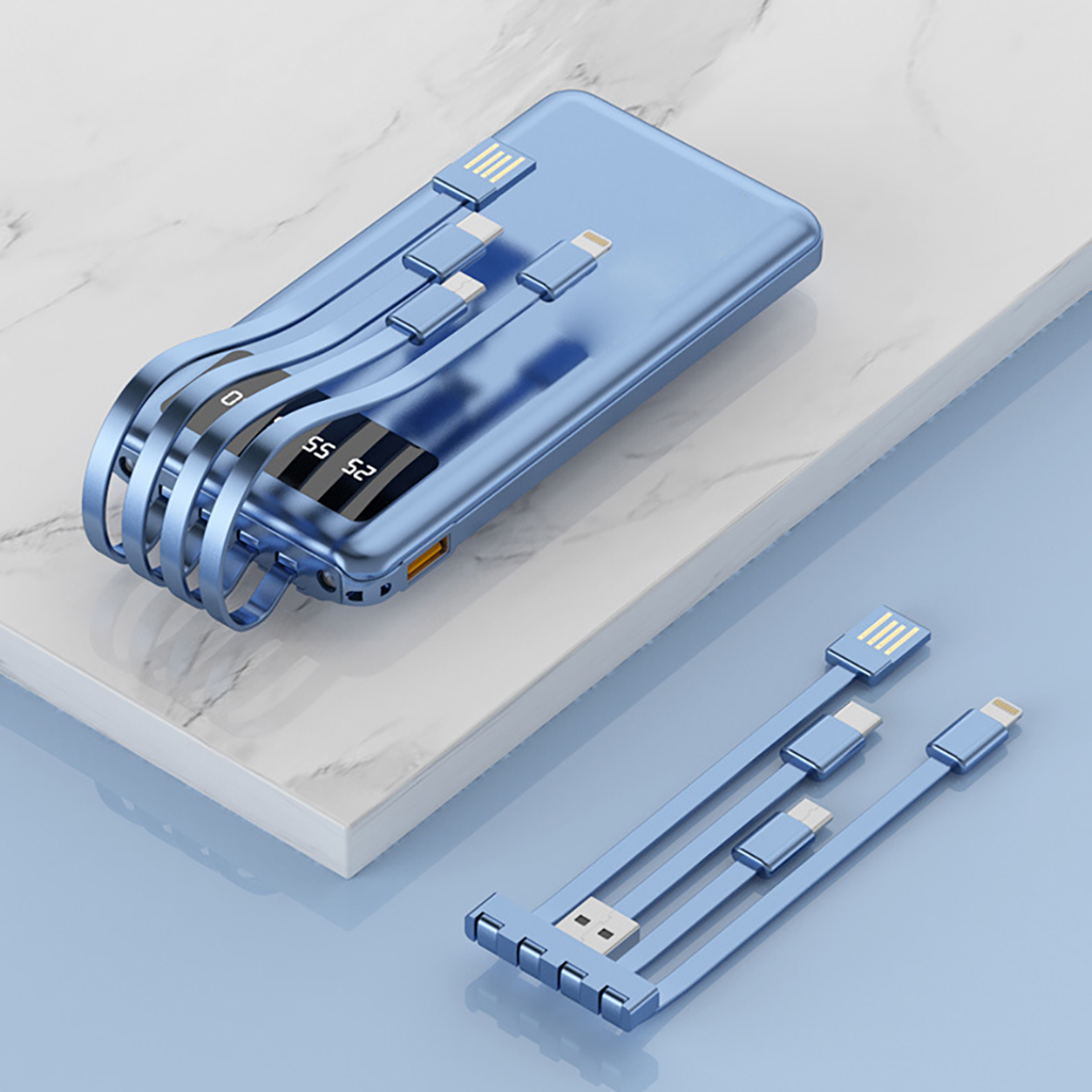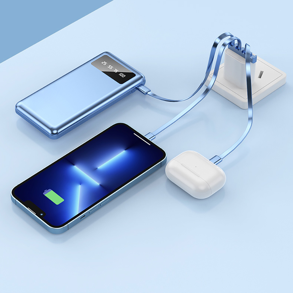 10,000 mAh Multi Built-in Cables Power Bank includes the following features :
