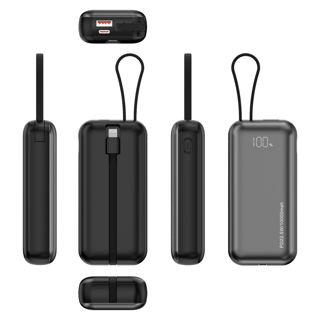 10,000 mAh PD 22.5W Power Bank with Built-in Lightning Cable Hanging Cord includes the following features :