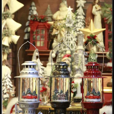 10.25"H Christmas Lighted Snow Globe Lantern W/Swirling Glitter Battery Operated