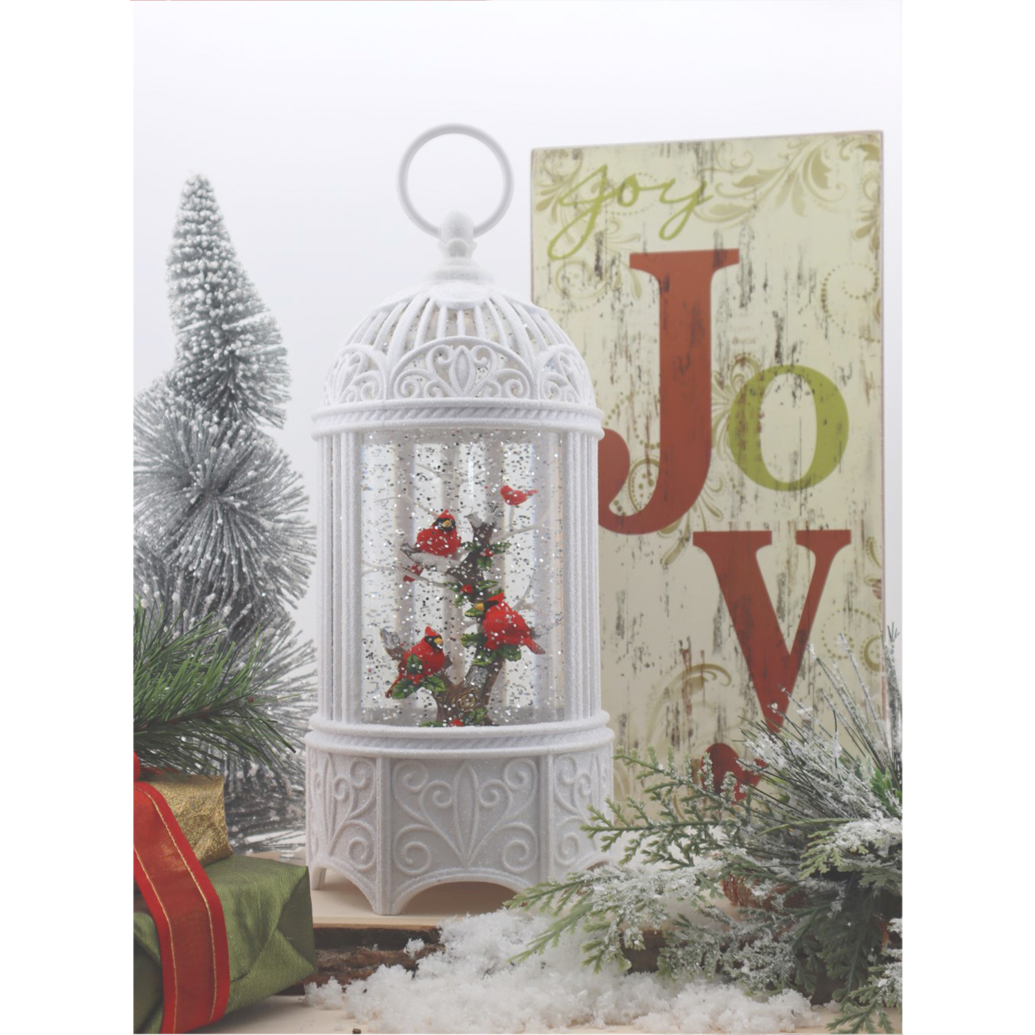 Christmas Cardinal Bird Cage Christmas Lighted Water Globe Lantern 10.5"H Musical Snow Globe with Swirling glitter Battery Operated & Timer