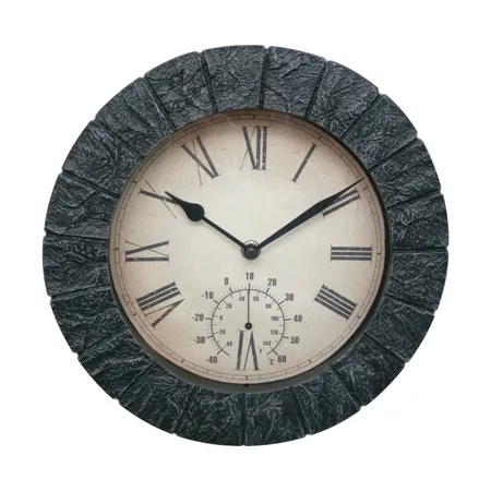 With a nostalgic design, this well-designed analog clock adds a unique touch to your tasteful room decor. The well-engineered analog clock precisely indicates the time. The versatile clock also features two subdials that indicate temperature and humidity.