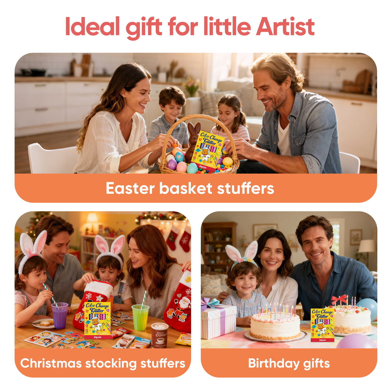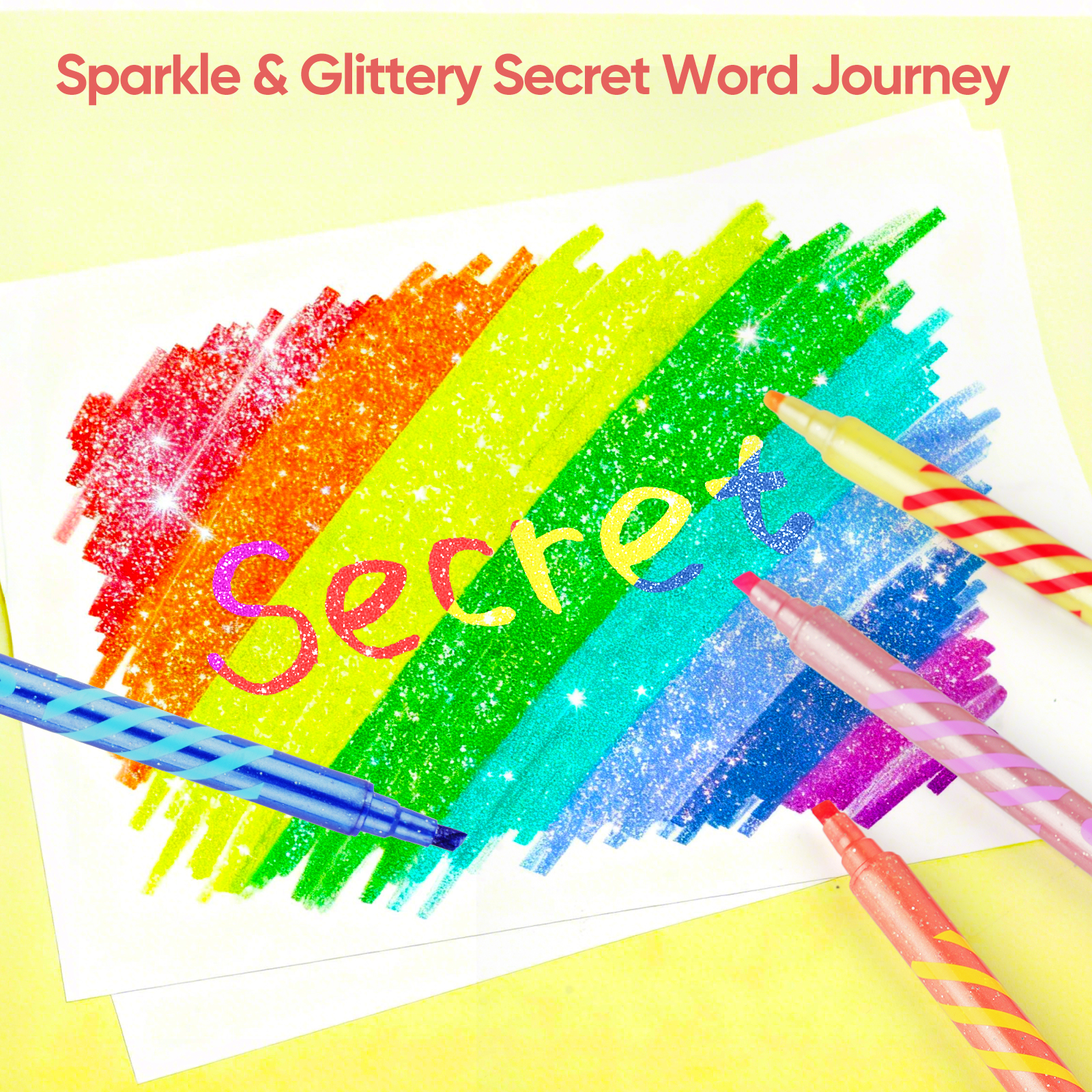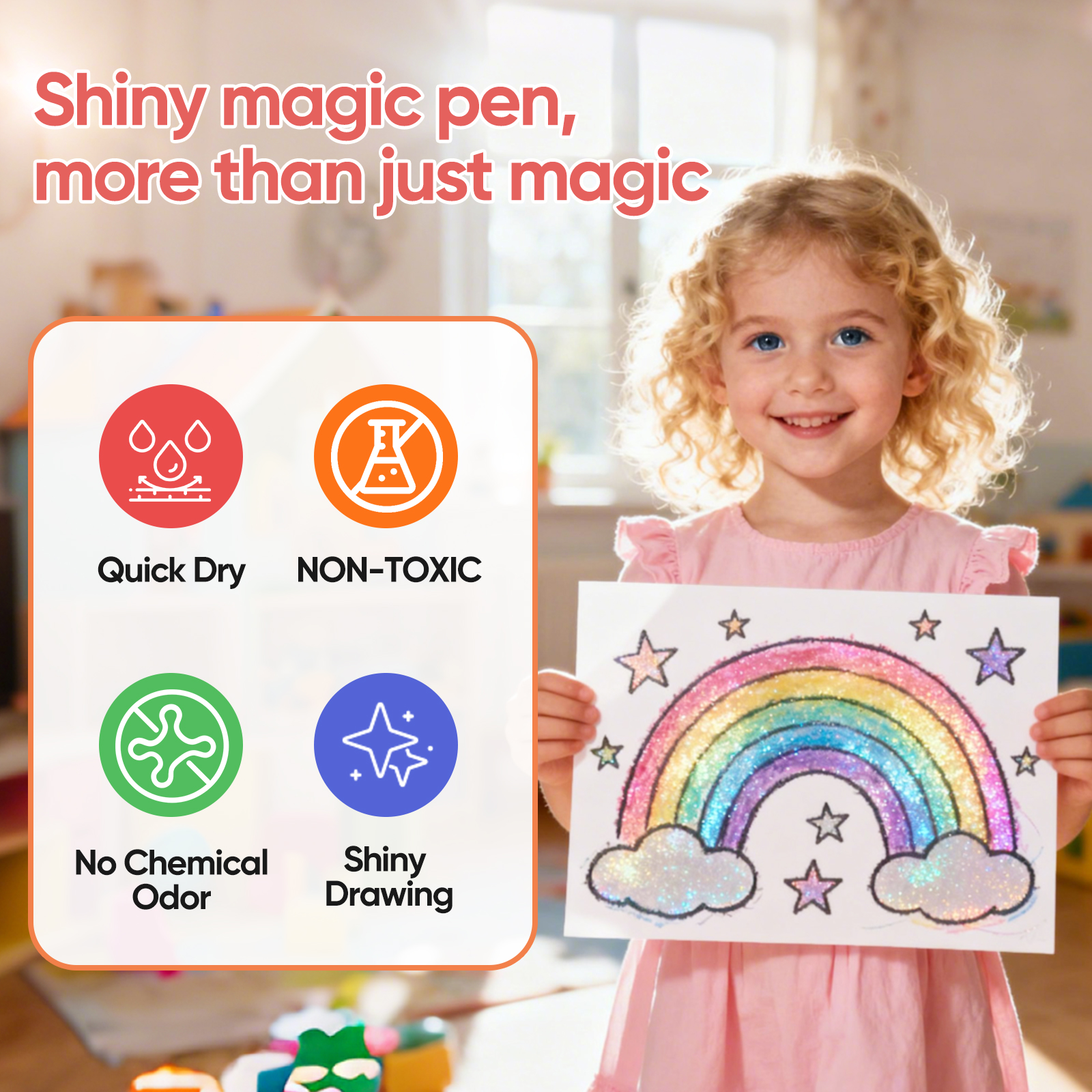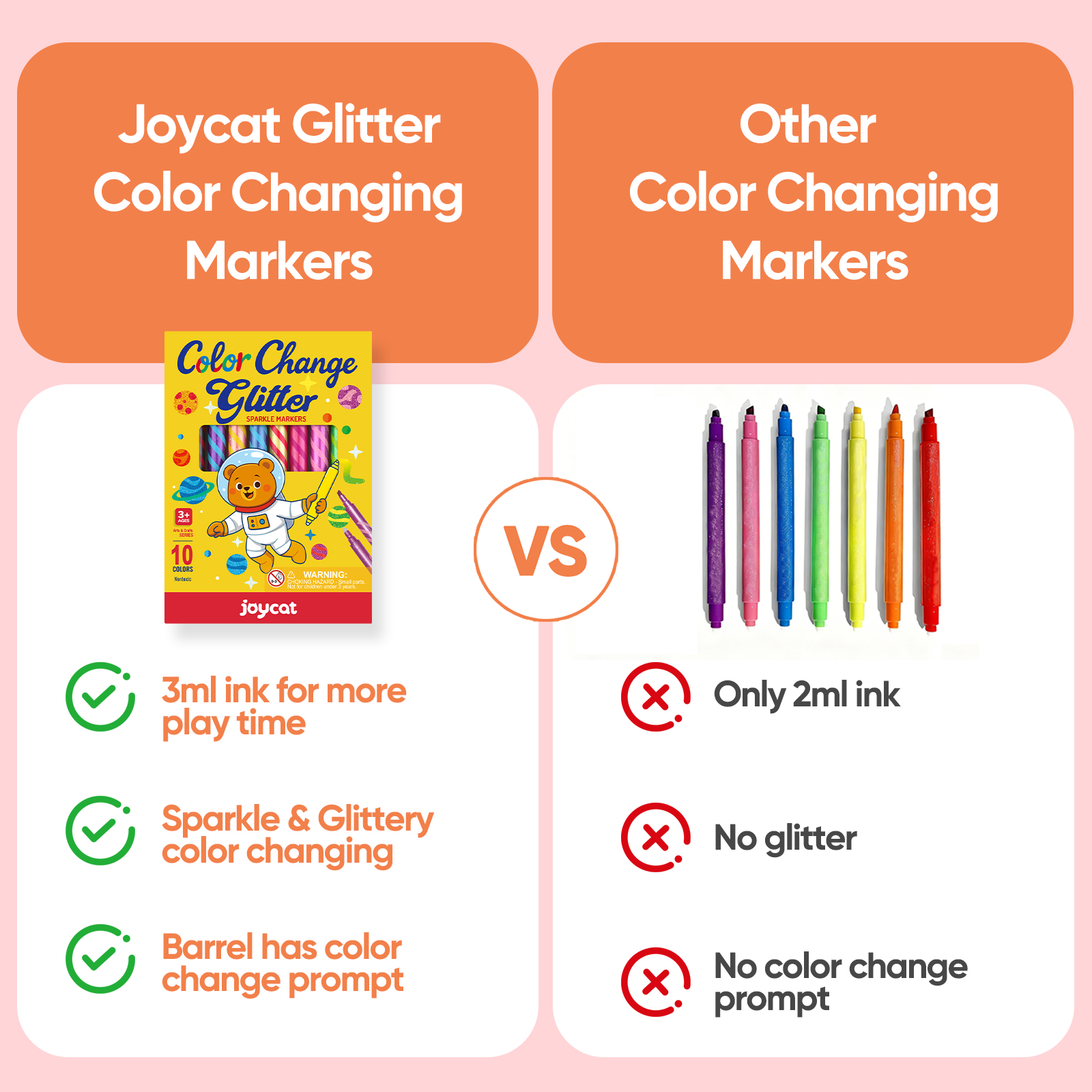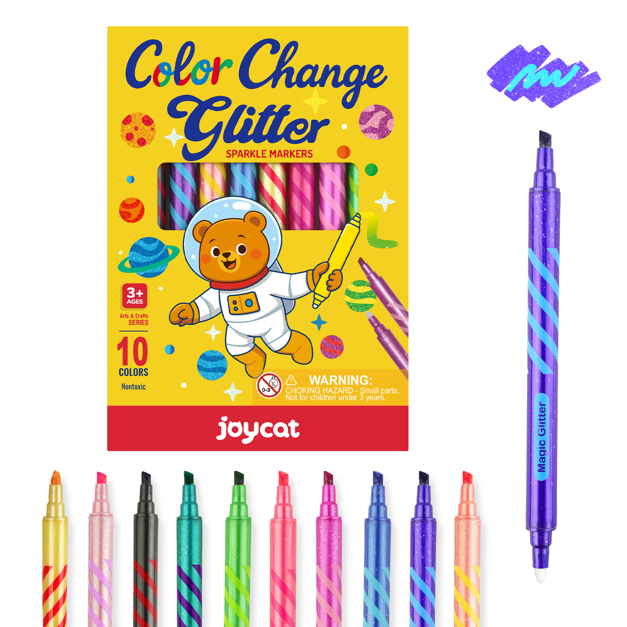 【See The Magic On The Barrel & On The Paper】 Never guess the color change again! Each marker features a clear, color-coded barrel that shows you the starting color and the magical end color (e.g., Red → Orange). Just draw with the colored chisel tip and watch the sparkle ink transform instantly with the white cone tip, creating a mesmerizing and predictable magical art experience.