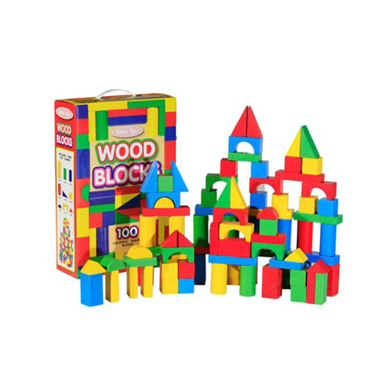 This 100-piece wooden block set comes with blocks in various shapes and colors. Children can build houses, castles and any construction with great fun. This quality set is excellent for developing children’s spatial intelligence.