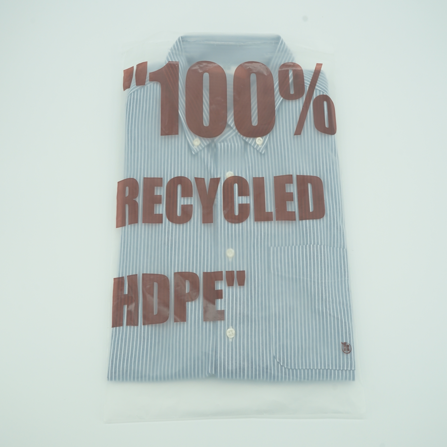 This plastic bag made of 100% recycled plastic. We have a GRS certificate to prove that it is 100% recycled. It feels hard. The color is transparent frosed . It is often used for packaging products. We can print the logo and pattern you want.