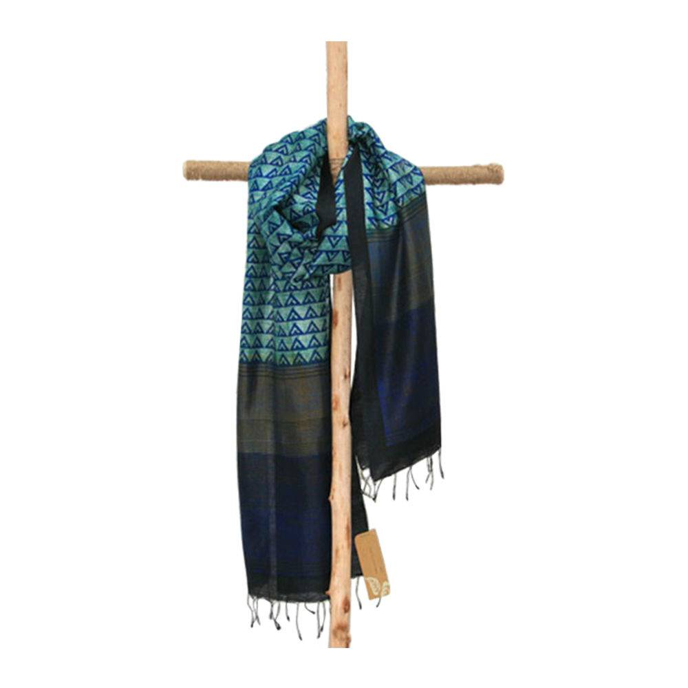 Get this silk scarf and you can ward off a slight chill without a heavy wool scarf in transitional seasons. This basic scarf is hand-woven with repeating triangular pattern and solid-colored panels for a trendy touch. Not only is the silk construction soft next to your skin, it is also a temperature-regulating choice for wearing in fall or spring.