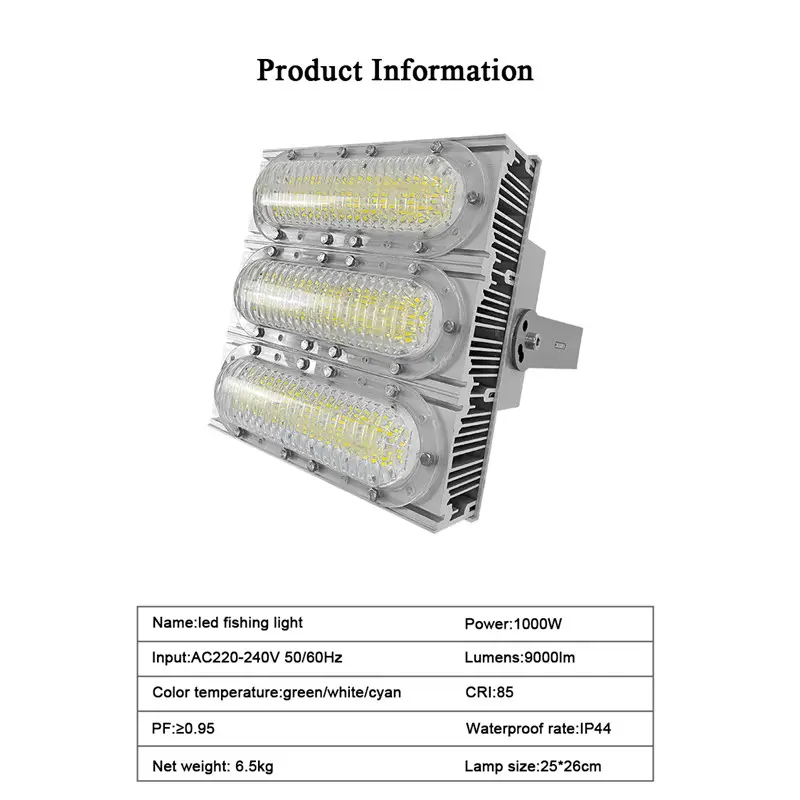 1000W Fish Gathering Lamp High Power Led Submersible Cyan Lights Deep Drop Fishing Light Fishing Head Light