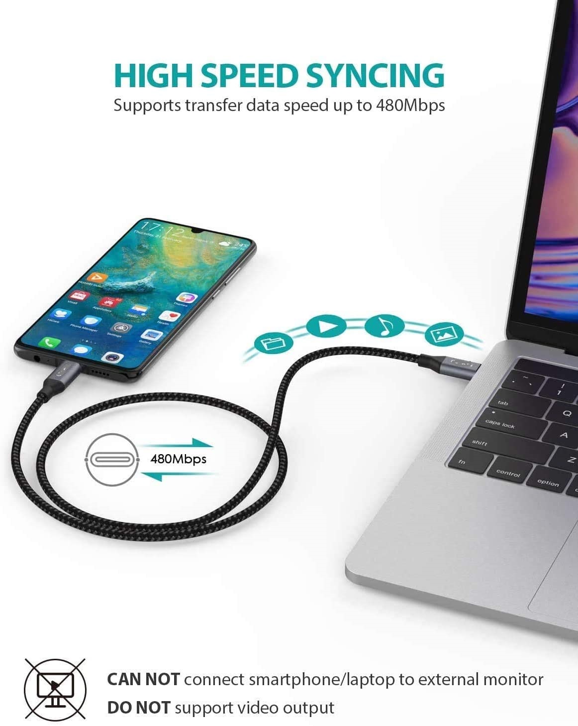 【Data】usb c cables make it a perfect choice for office, home, airport, car and almost all places you might use your laptop or phone. Data transfer speed reaches up to 480MB/s helps you work efficiently.