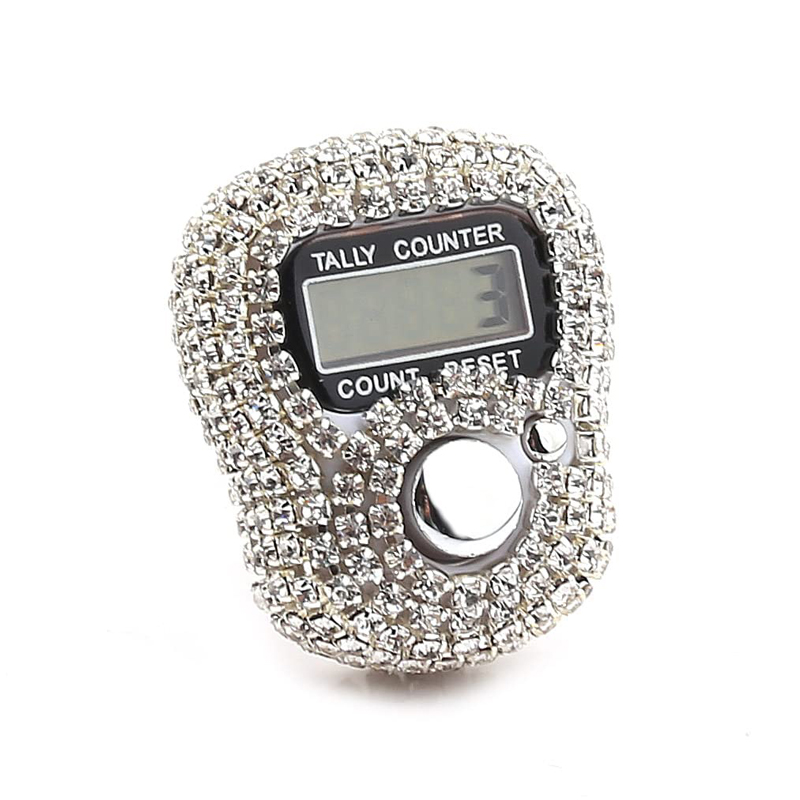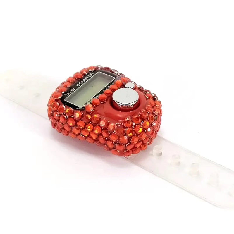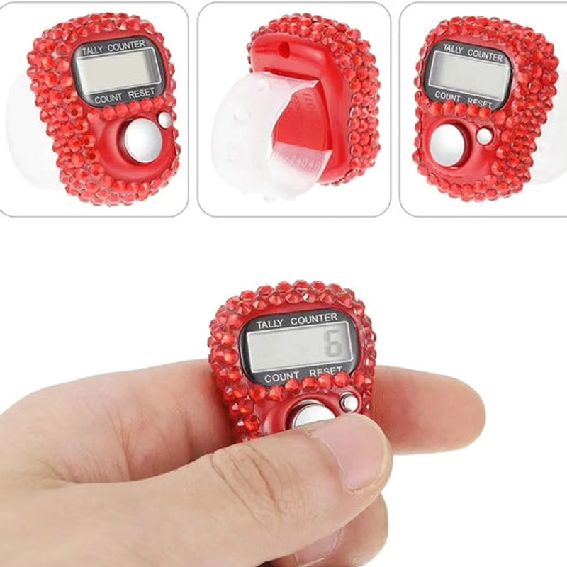 * Elegant Design: Features sparkling rhinestones with a 5-digit LCD screen that counts from 00000 to 99999. * Long-lasting Use: Includes a battery (non-replaceable) for extended operation. * Adjustable and Compact: Fits all finger sizes, small, lightweight, and easy to use (Size: 1.4'' x 0.5'' x 1.1''). * Versatile Counter: Ideal for tracking laps, knitting, or other counts with an option to resume or reset using the side button.